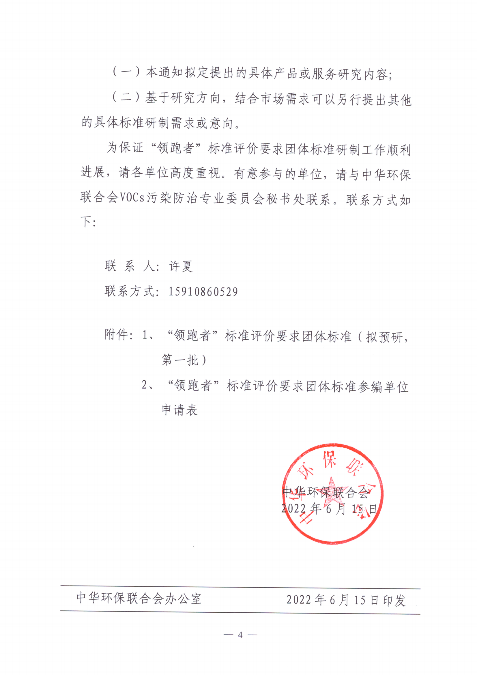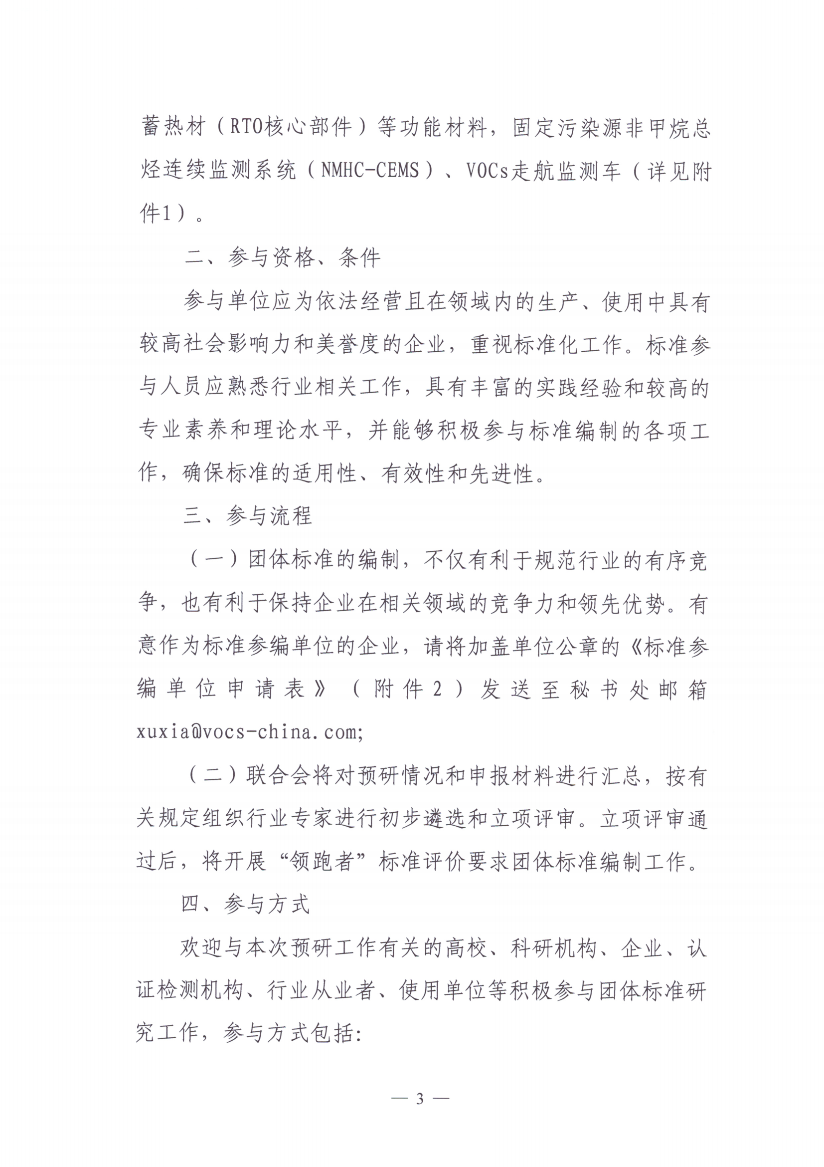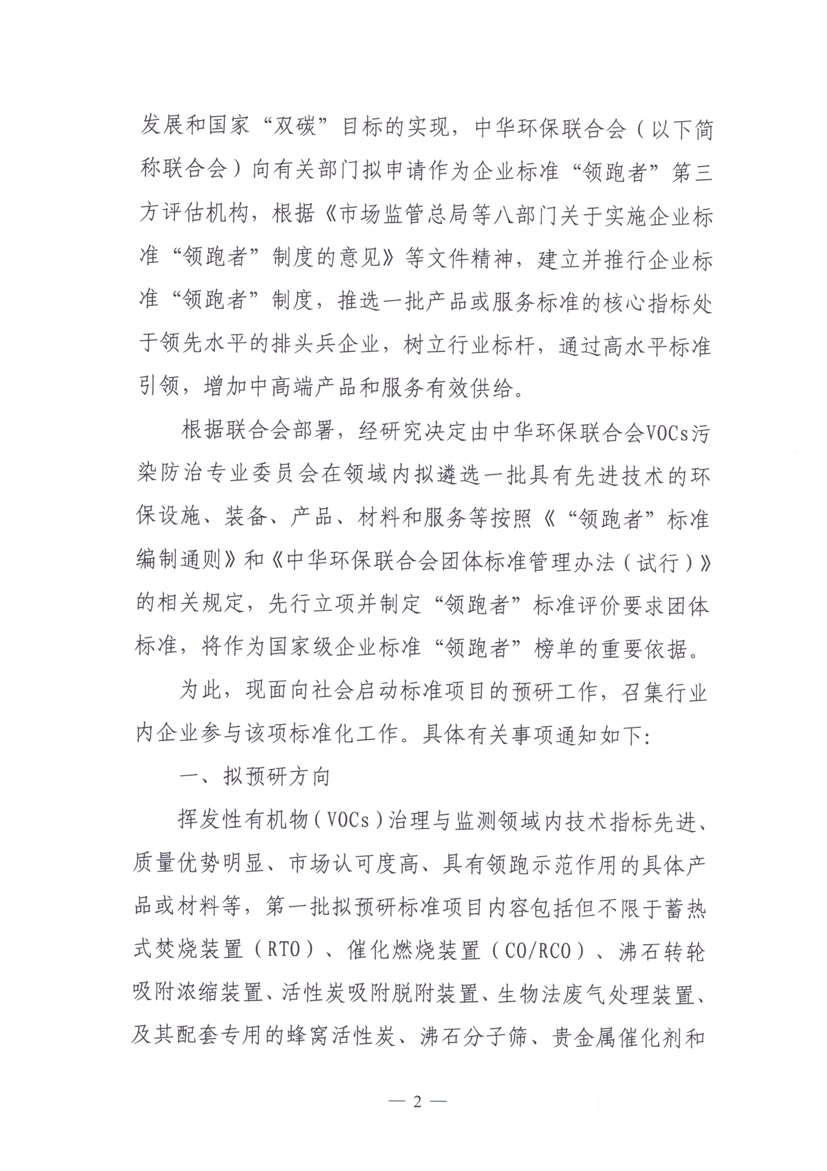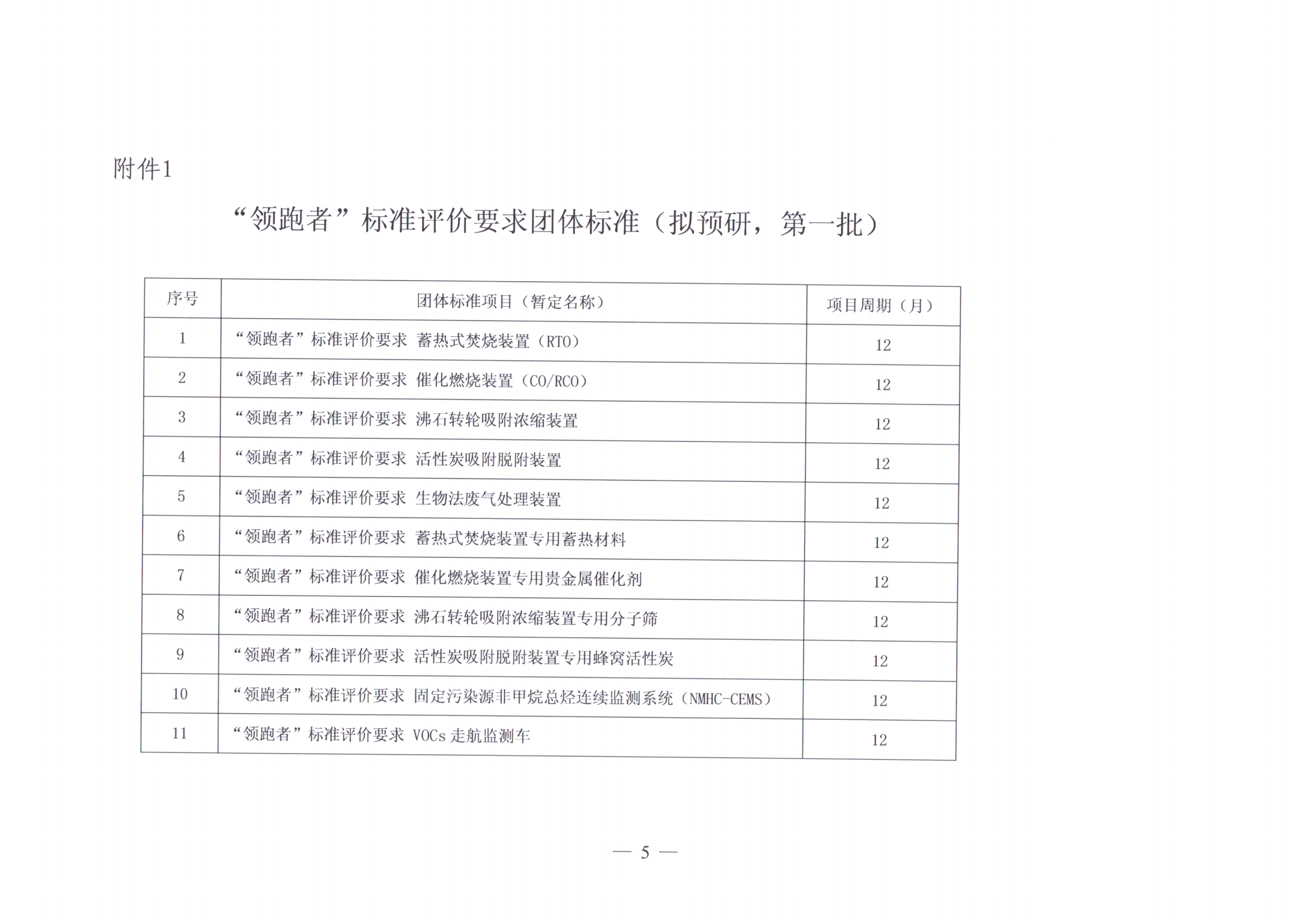 关于开展挥发性有机物(VOCs)治理与检测领域“领跑者”评价团体标准预研工作的通知