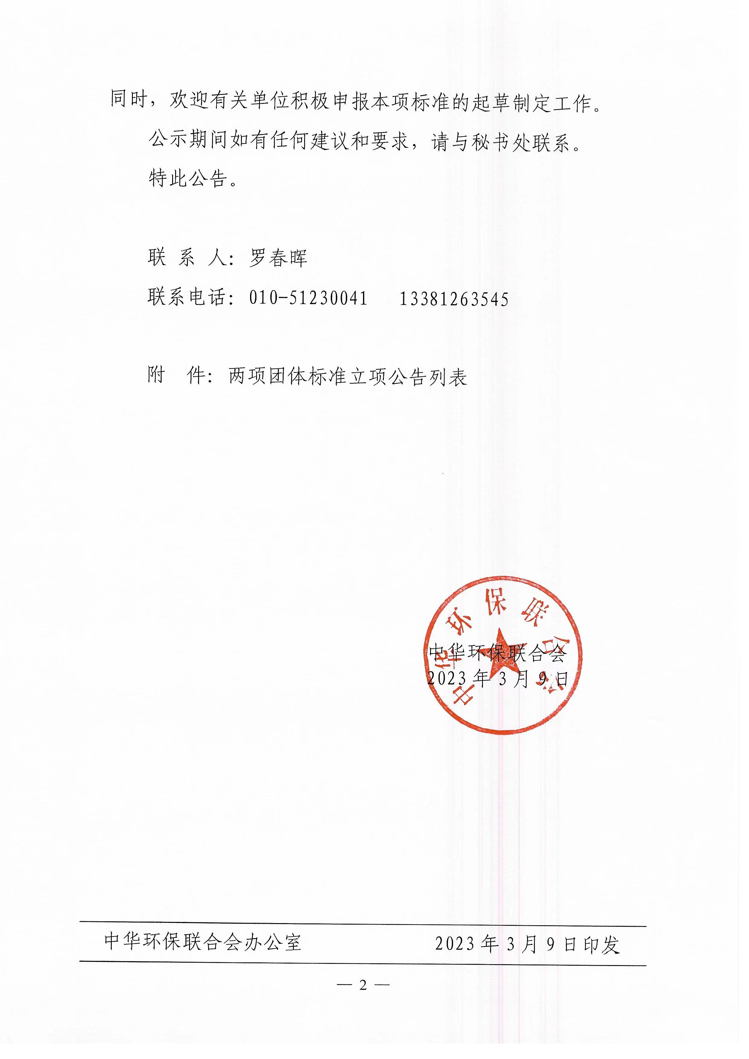 关于开展 2023年度中华环保联合会