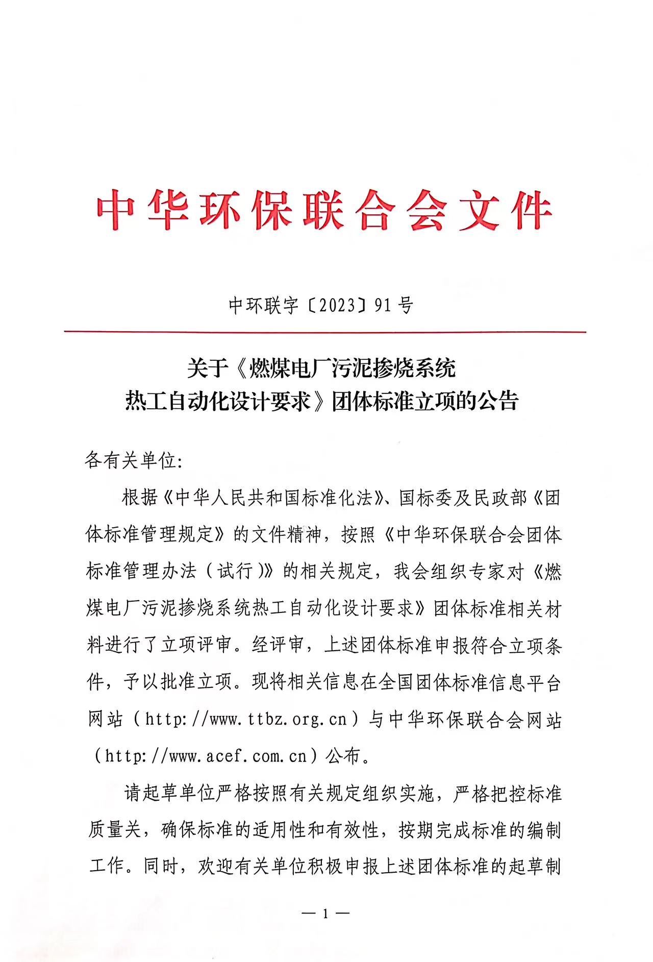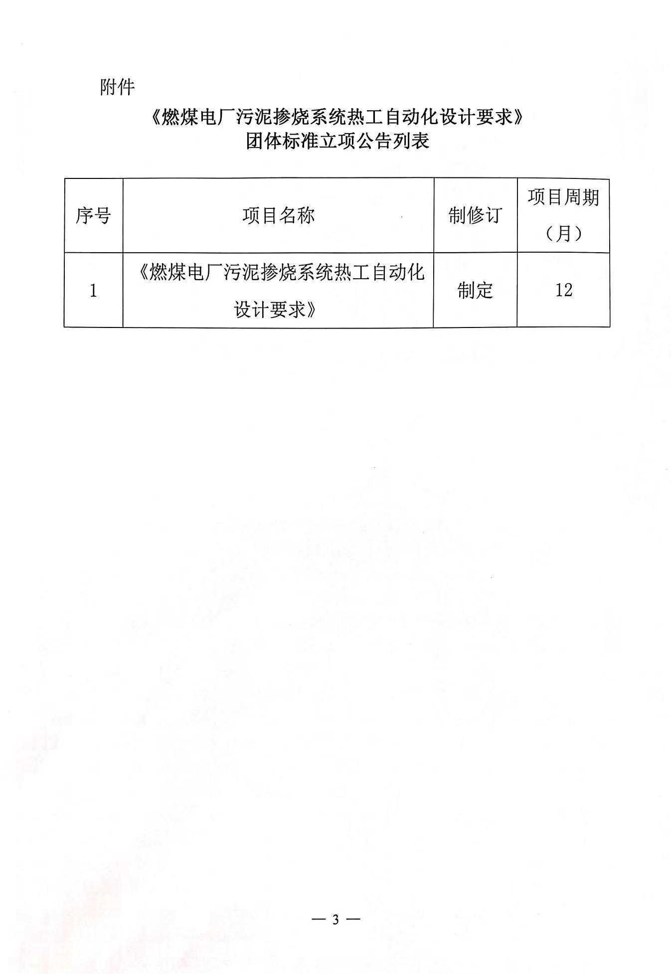 关于《燃煤电厂污泥掺烧系统热工自动化设计要求》团体标准立项的公告