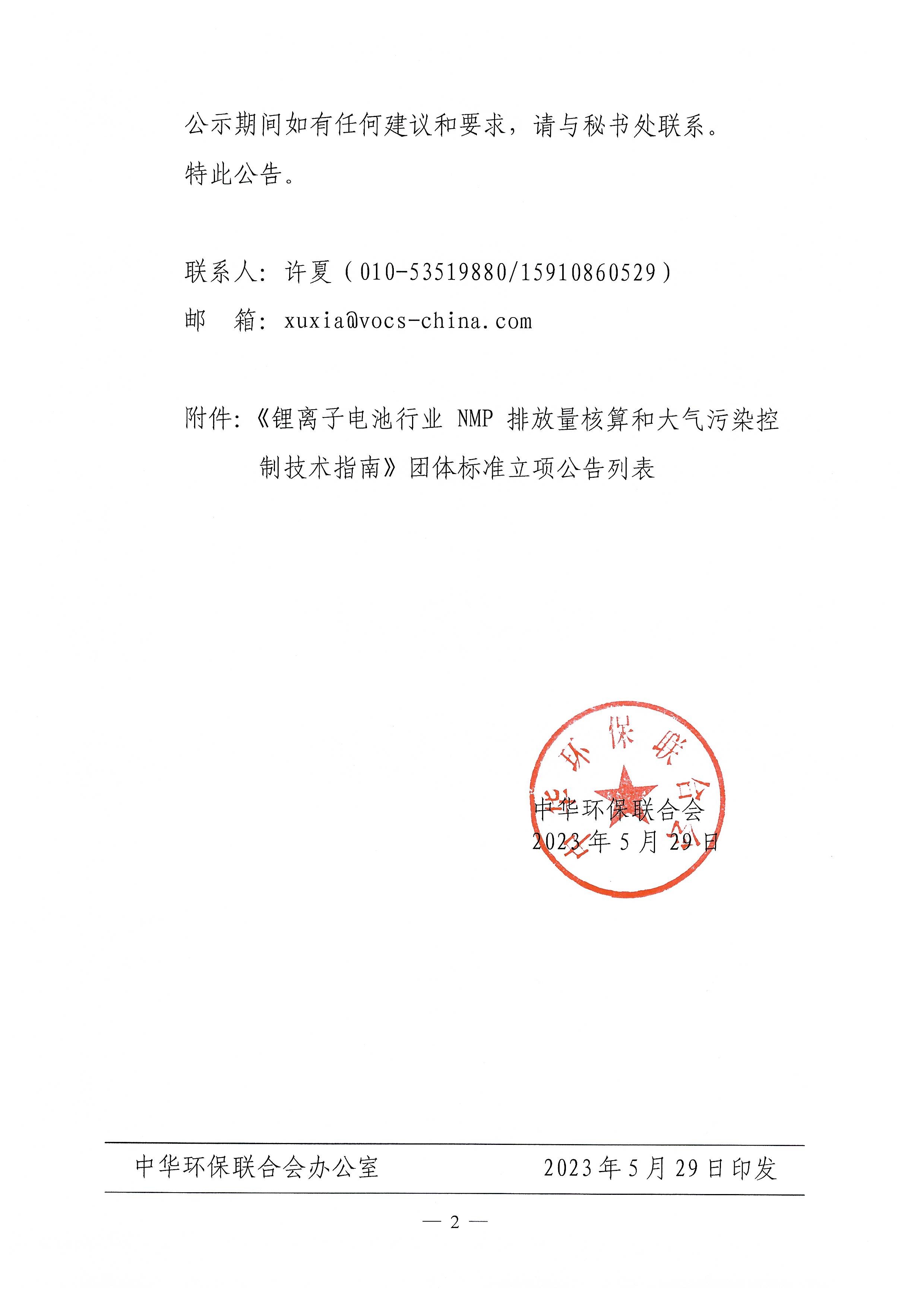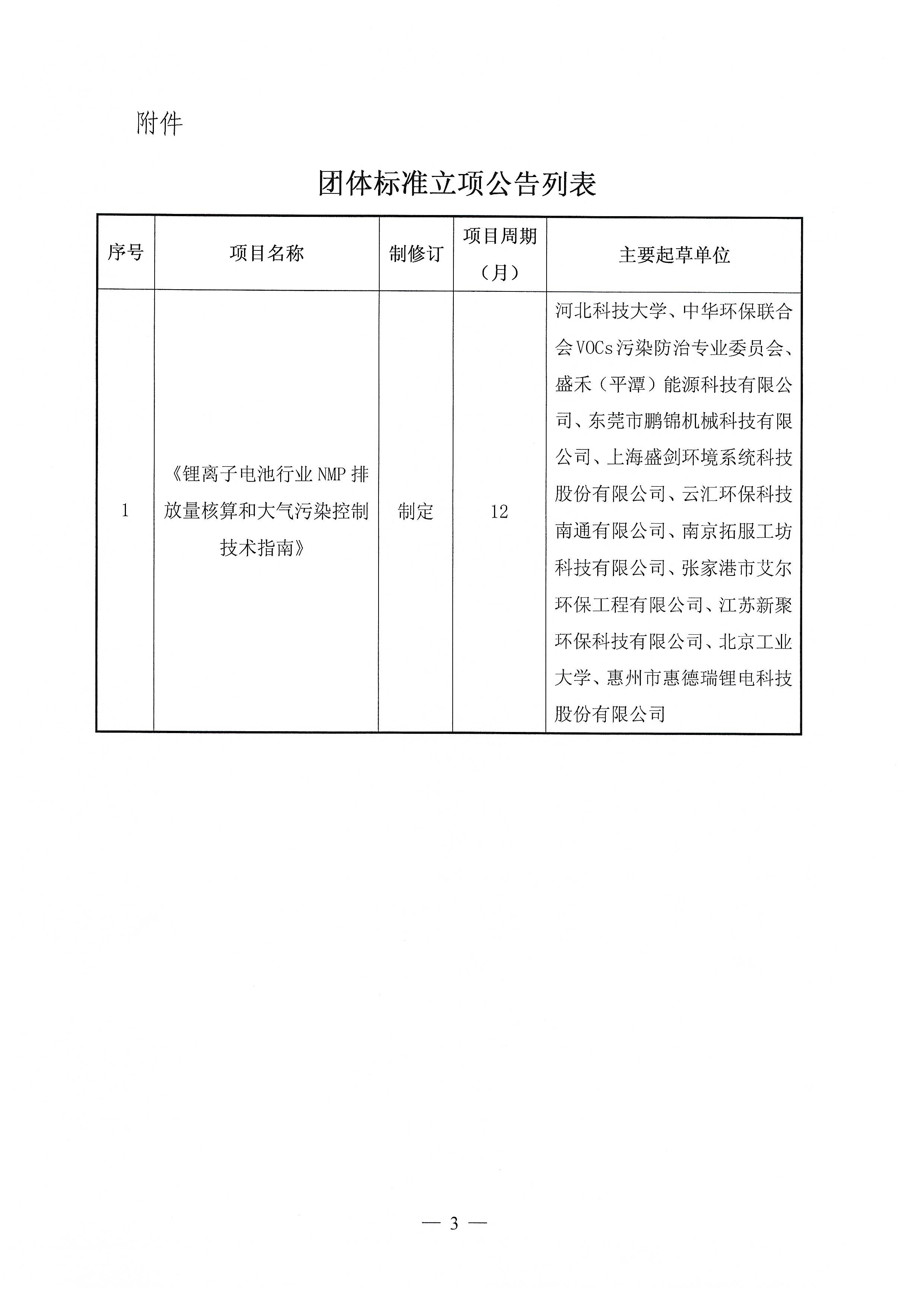关于《锂离子电池行业NMP排放量核算和大气污染控制技术指南》团体标准立项的公告