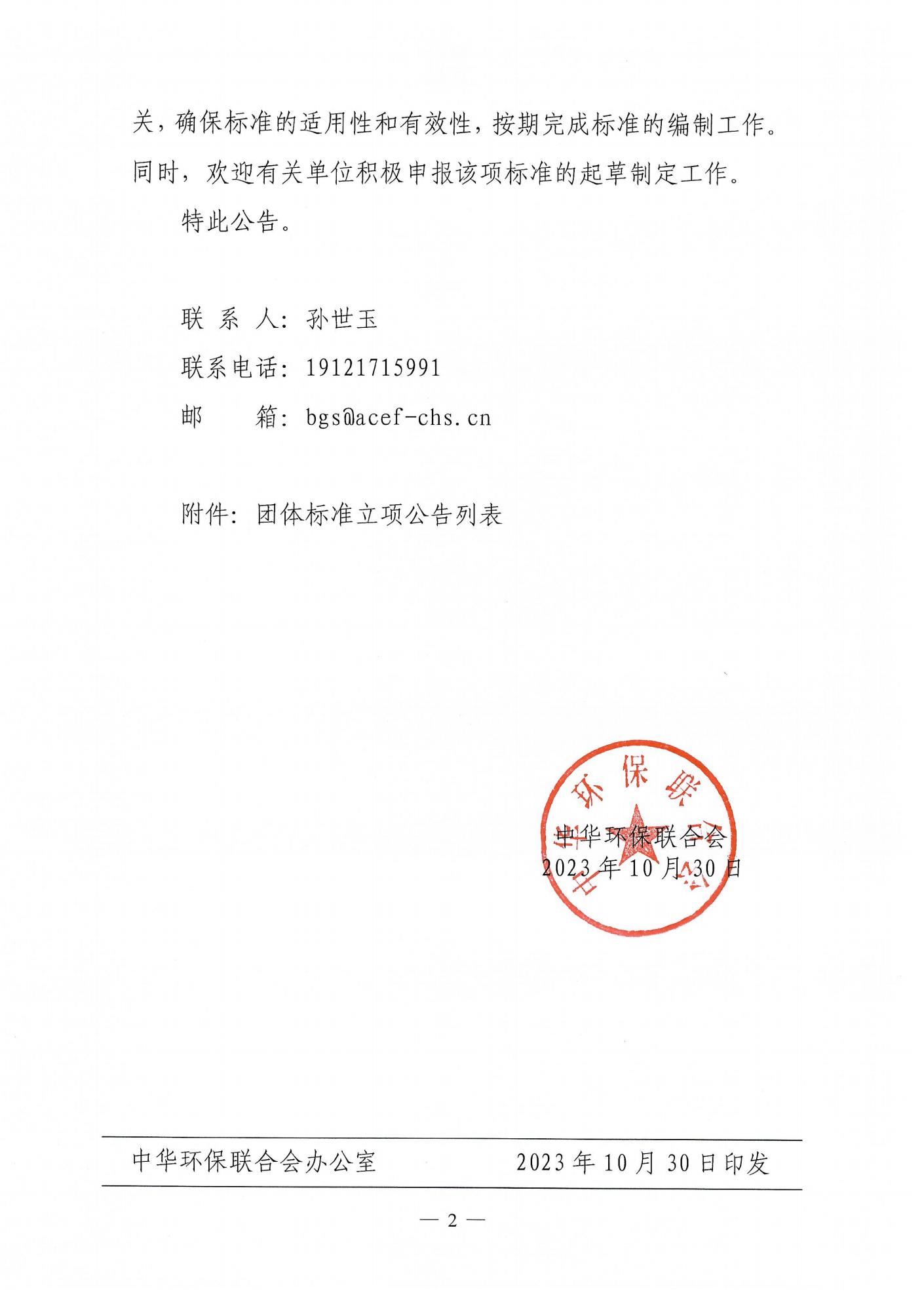 关于开展 2023年度中华环保联合会