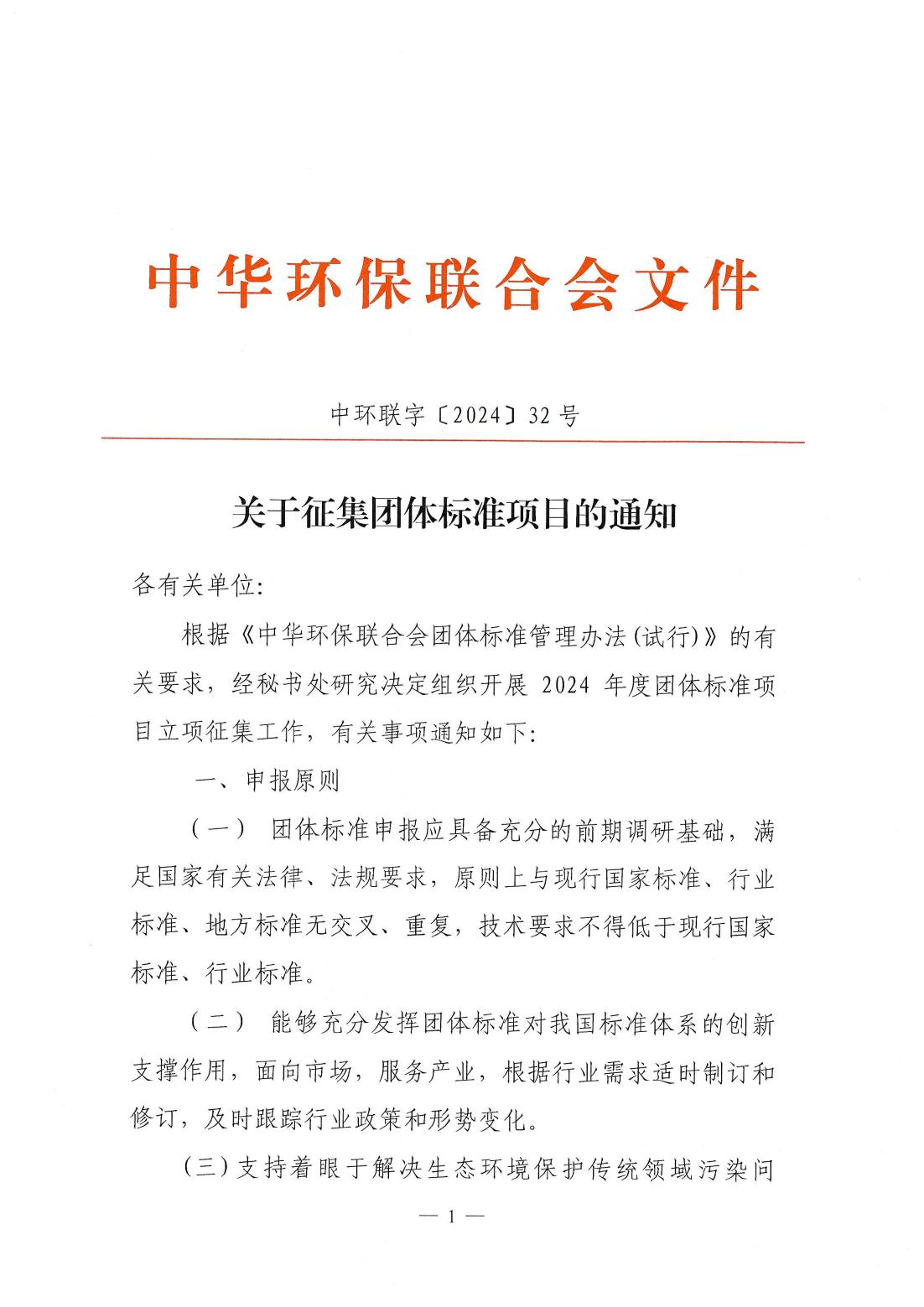 关于征集团体标准项目的通知