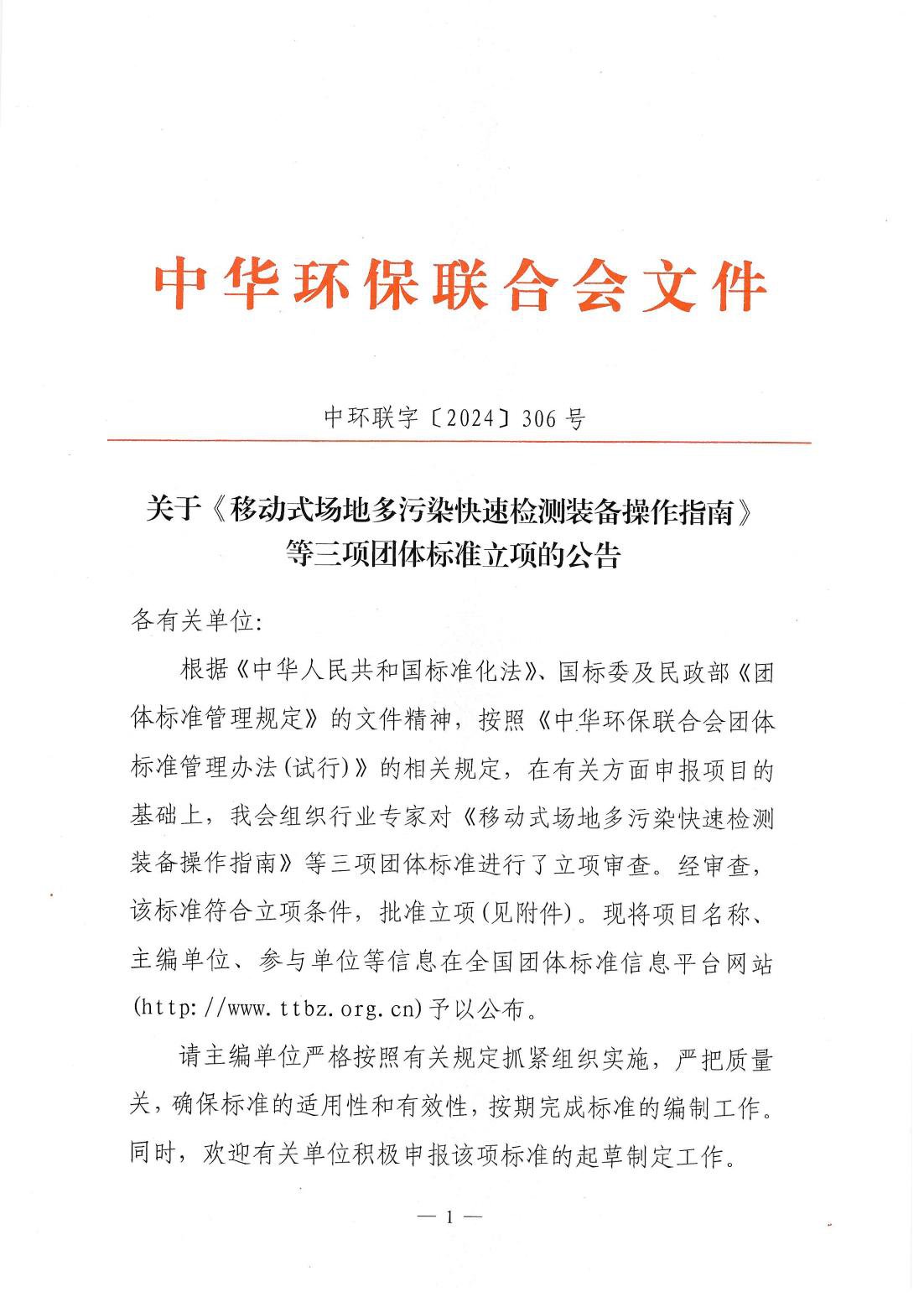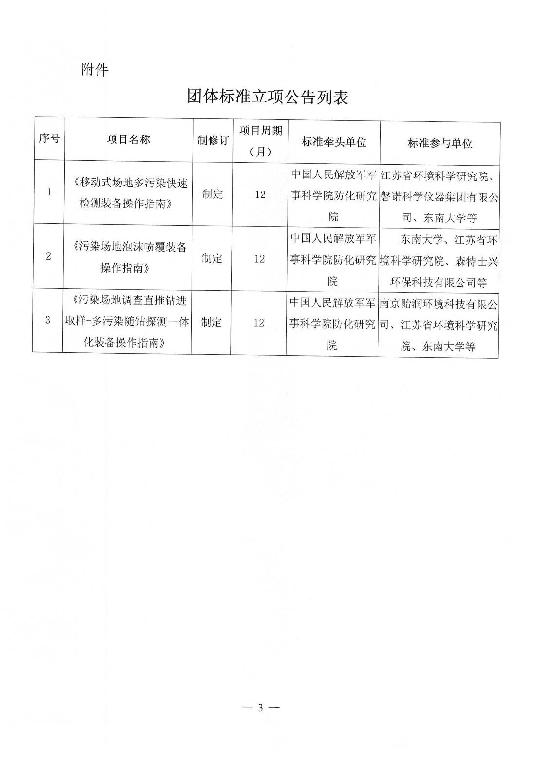 关于《移动式场地多污染快速检测装备操作指南》等三项团体标准立项的公告