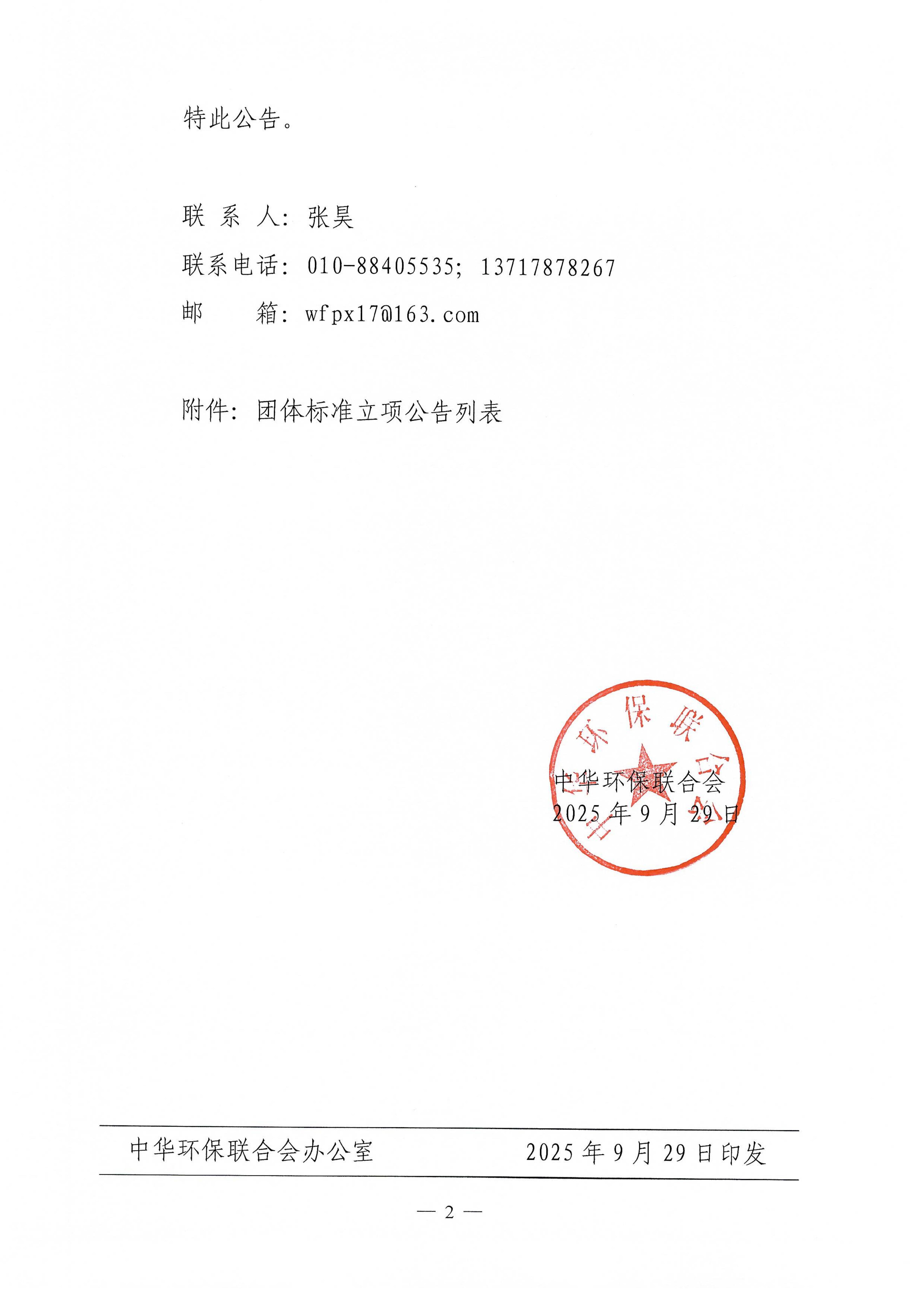 关于开展 2025年度中华环保联合会