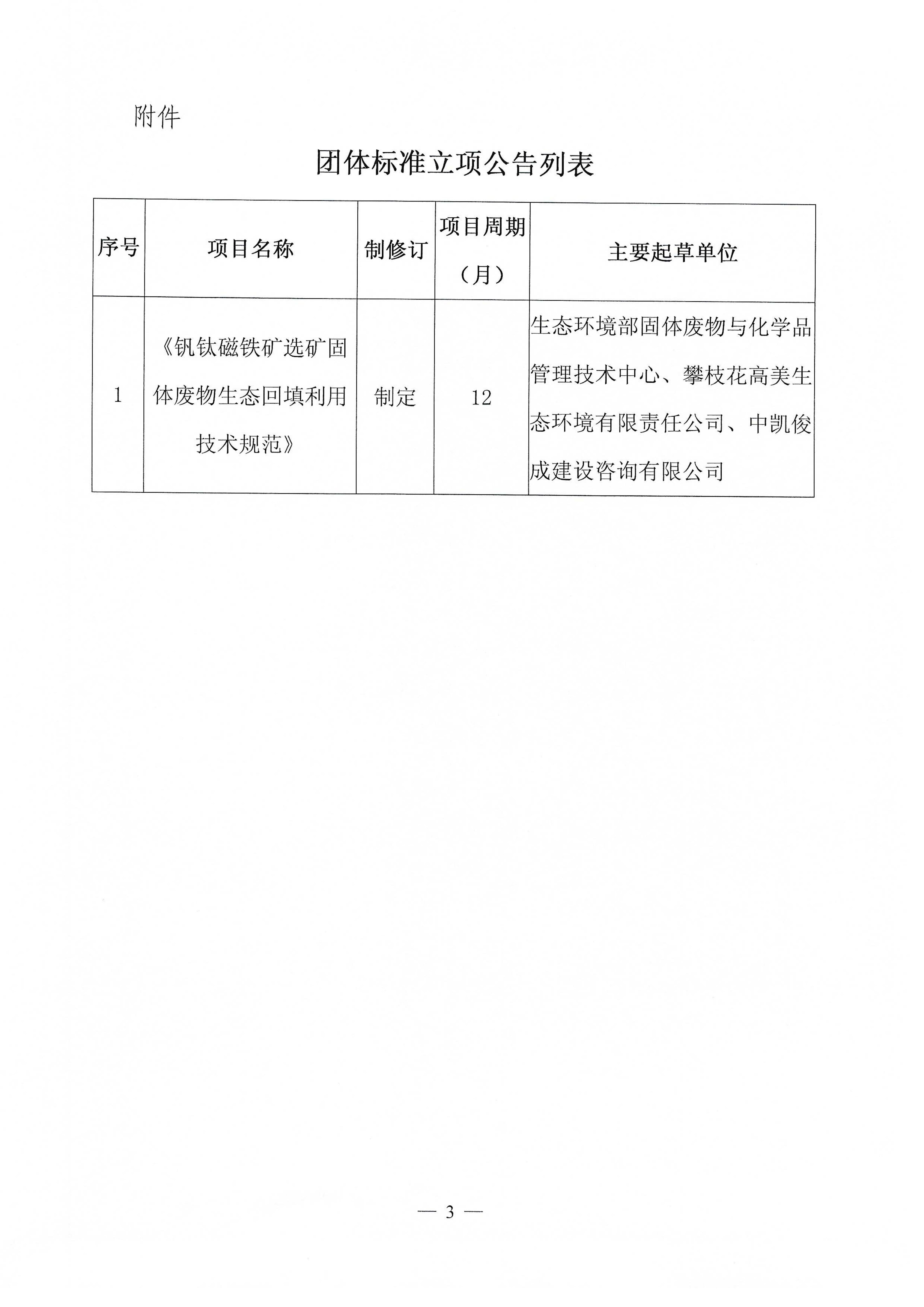 关于《钒钛磁铁矿选矿固体废物生态回填利用技术规范》团体标准立项的公告