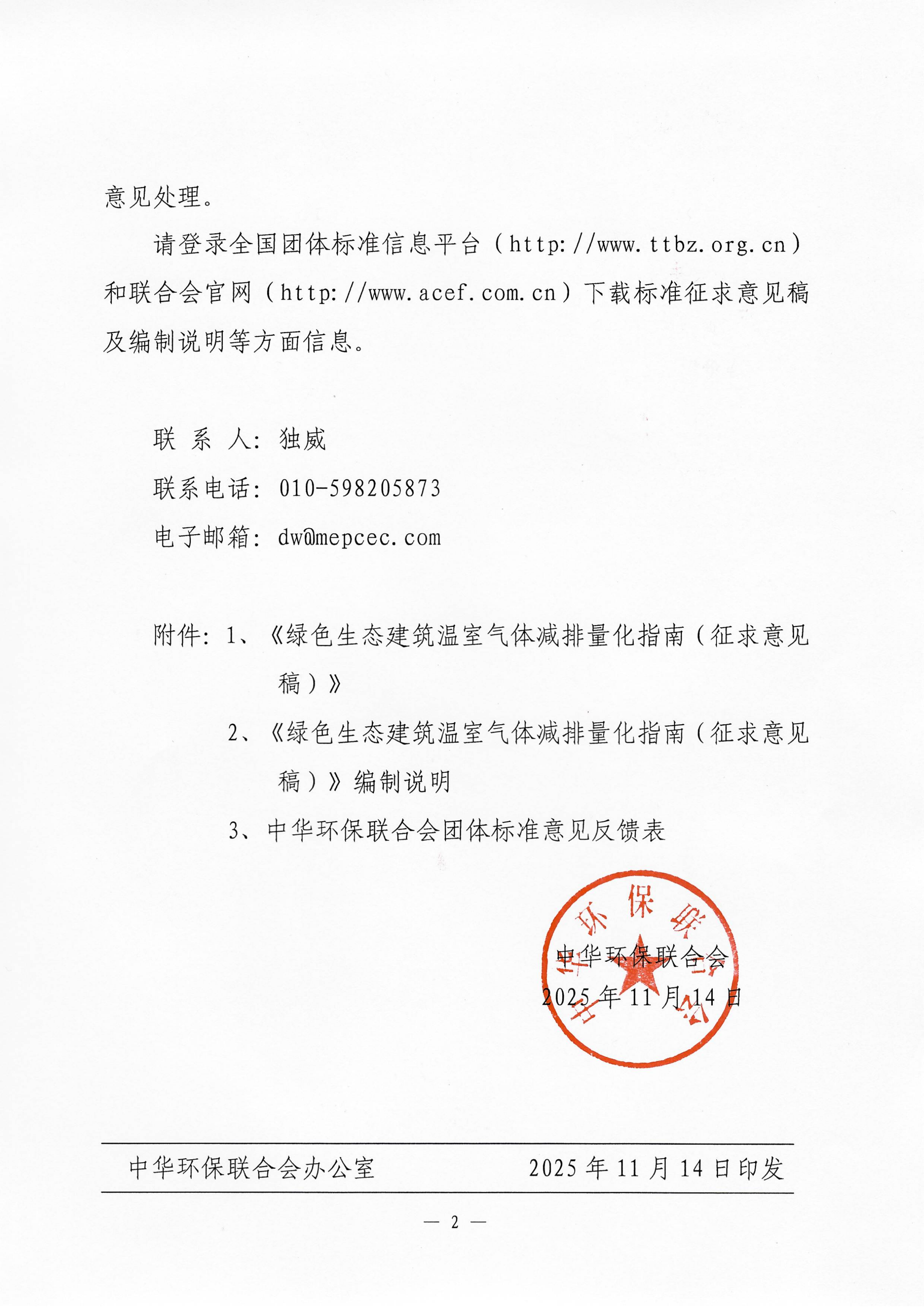 关于《绿色生态建筑温室气体减排量化指南》团体标准征求意见的函