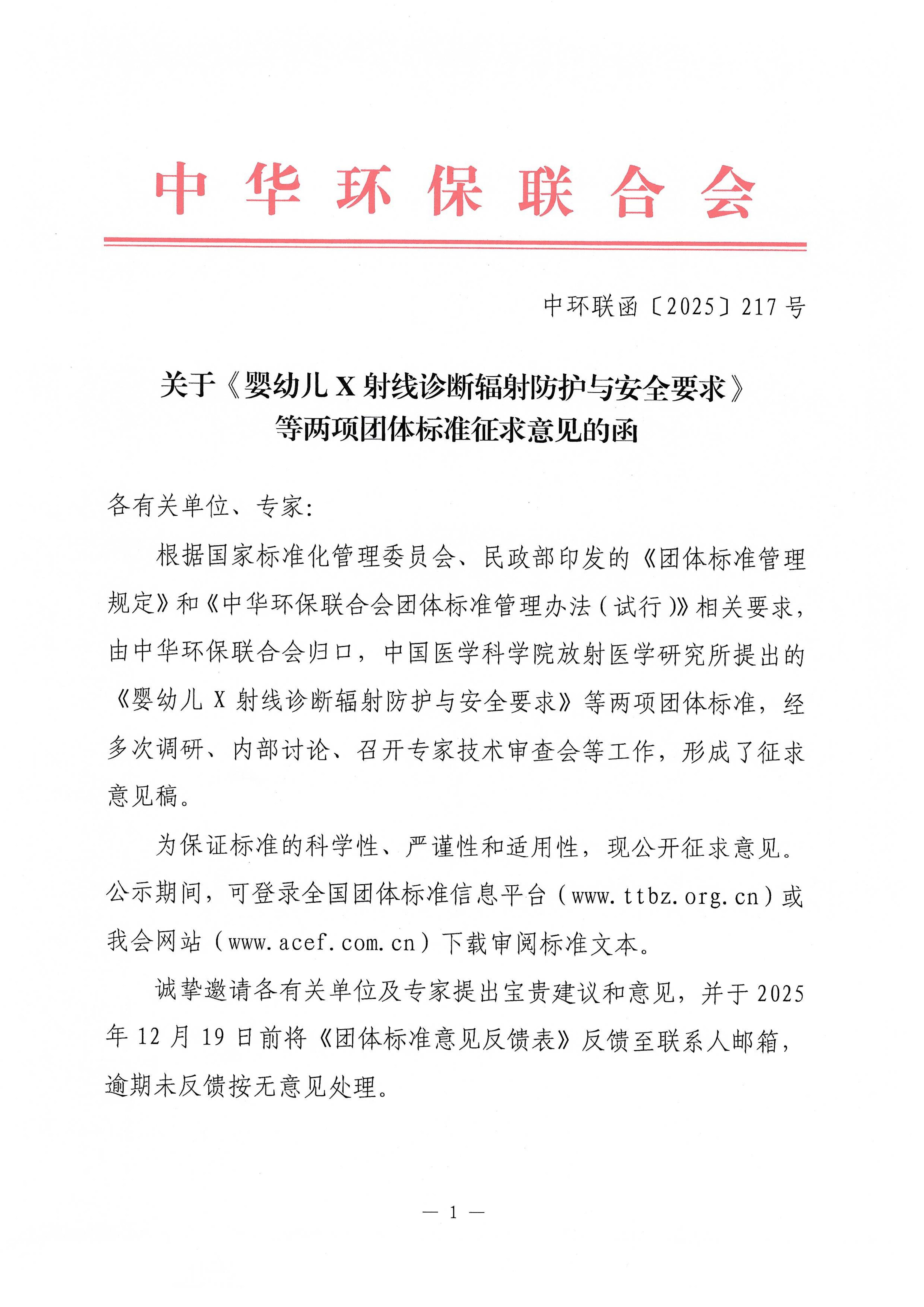 关于《婴幼儿X射线诊断辐射防护与安全要求》等两项团体标准征求意见的函
