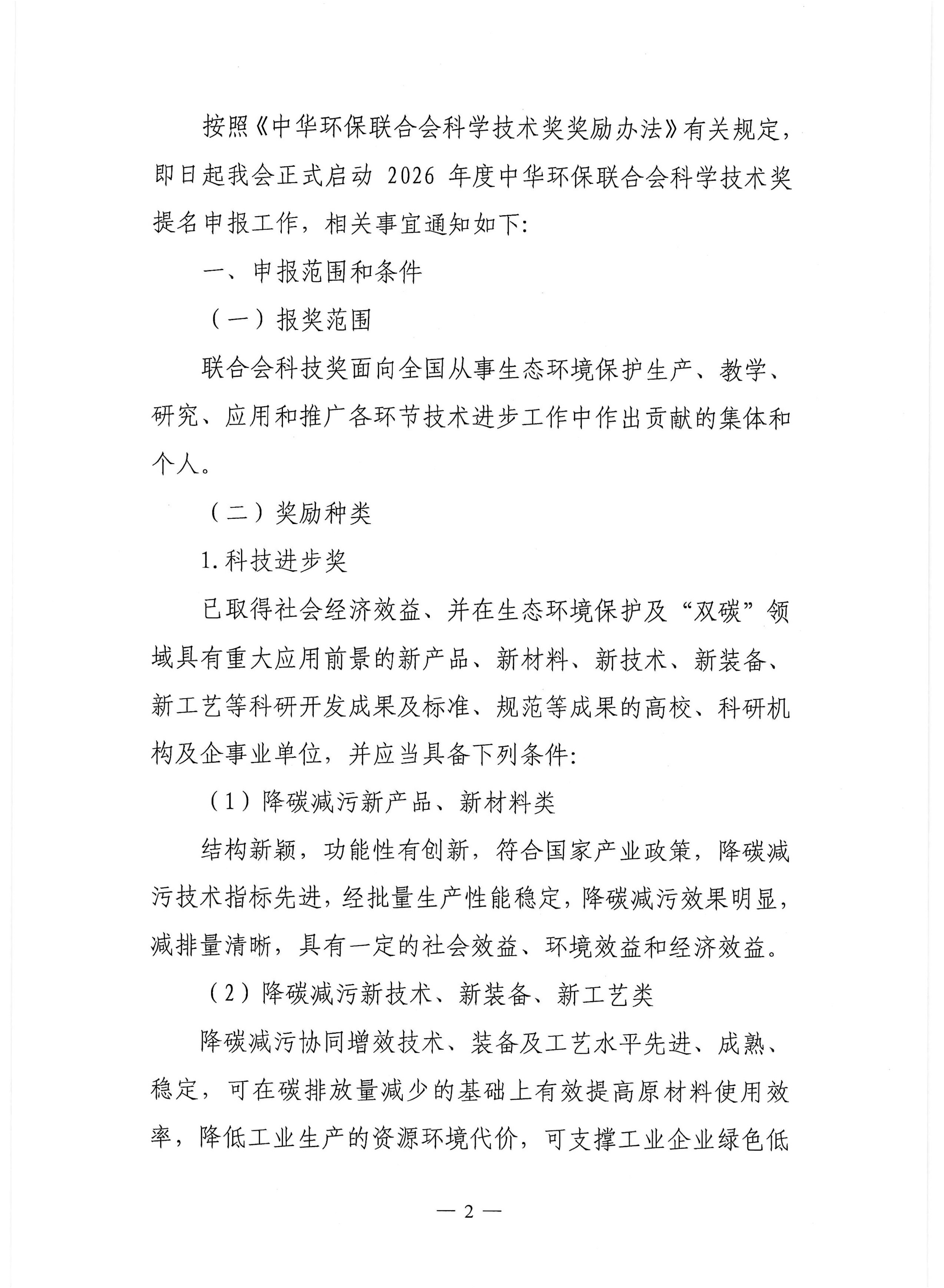 关于开展 2026年度中华环保联合会科学技术奖申报工作的通知