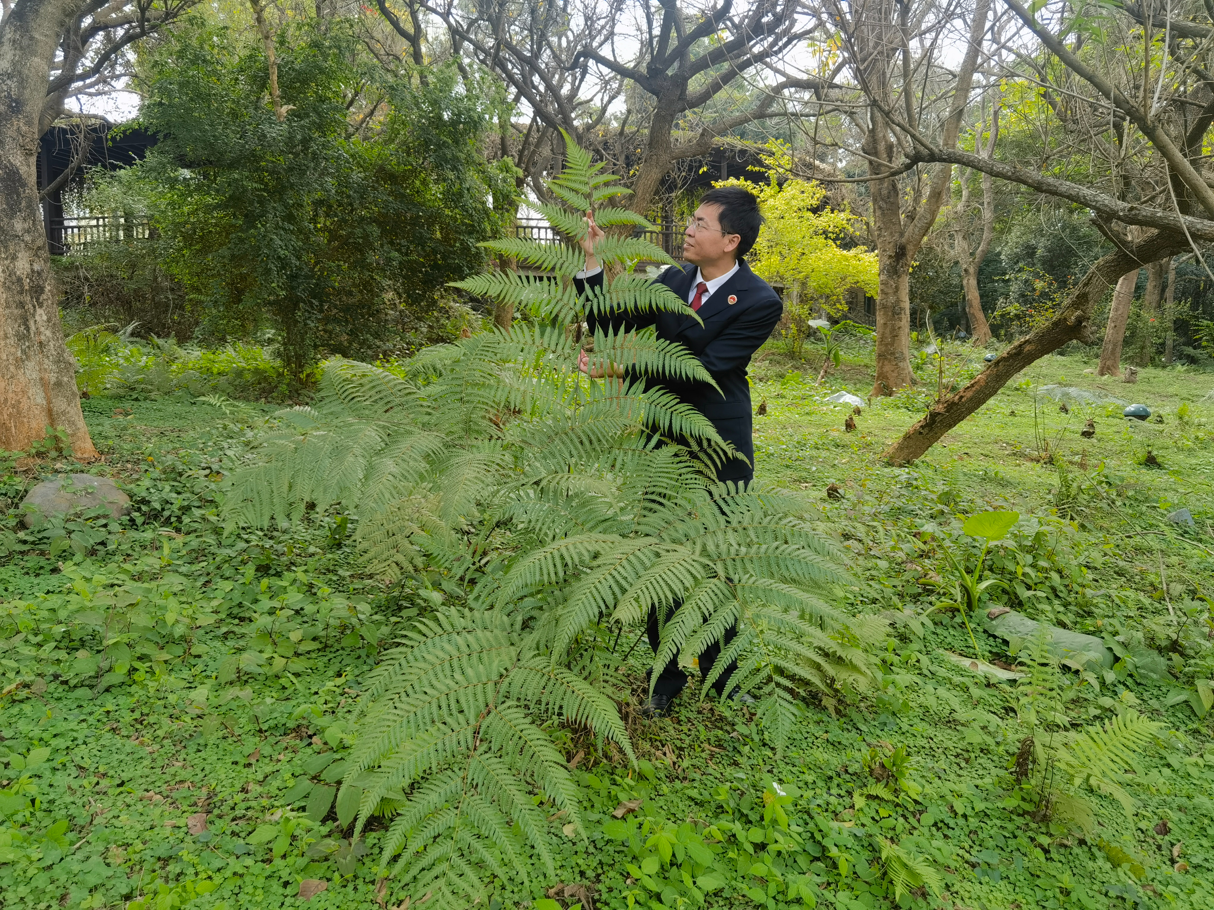 依托上海铁检院与龙海区院签订的《关于依法能动履职加强绿色生态公益诉讼协作的工作机制》,公益诉讼检察官开展回归原生生境“回头看”工作,在两院检察技术保障部门的协助下通过远程视频连线的形式共同观测在绿色生态共护基地中金毛狗蕨的生长情况。