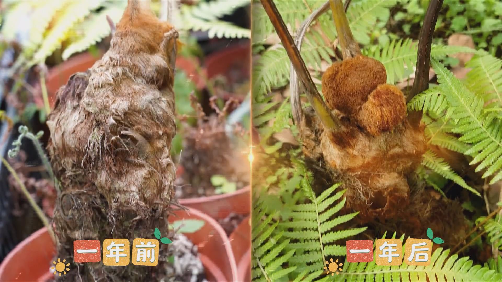 通过现场连线,可以清晰地看到,这些重返原生境地的金毛狗蕨在大自然的环保中,茁壮生长、株形高大、叶姿优美、坚挺有力,基部的金黄色茸毛蓬松有光泽、形态各异。当下正值初春,许多植株正冒着新芽,叶片刚萌发的形态呈螺旋形状,宛如一个个攥得紧紧的小拳头。