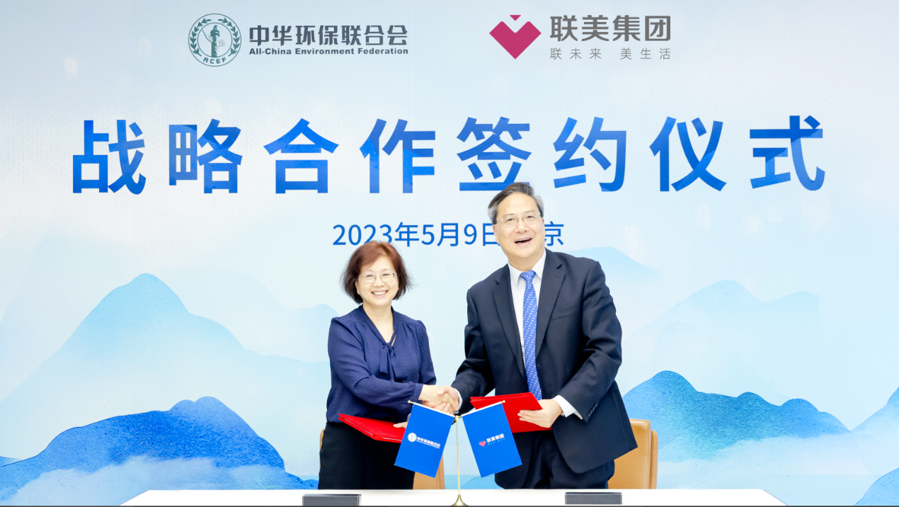 2023年5月9日,中华环保联合会与联美集团战略合作签约仪式在北京联美大厦举行。中华环保联合会主席孙晓华、副主席兼秘书长谢玉红、副秘书长郑庆宝、会员部部长张洁,联美集团董事长苏壮强、副总裁徐卫晖等出席签约仪式并开展交流座谈。