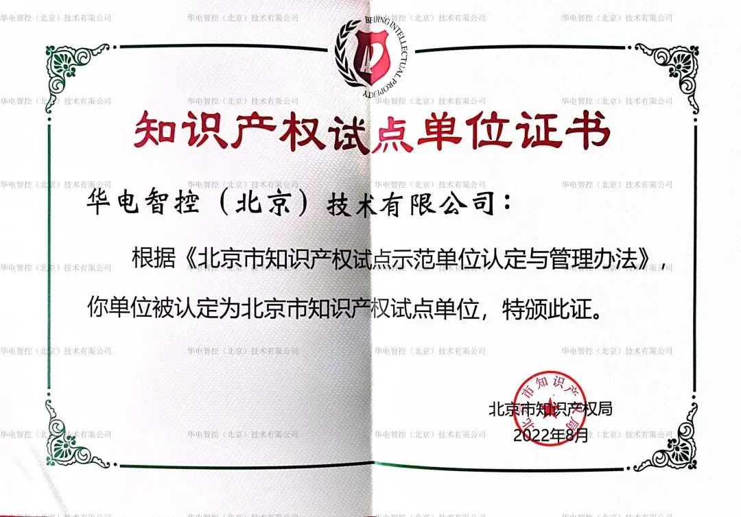 华电智控(北京)技术有限公司被北京市知识产权局评定为“北京市知识产权试点单位”,并授予“知识产权试点单位证书”。