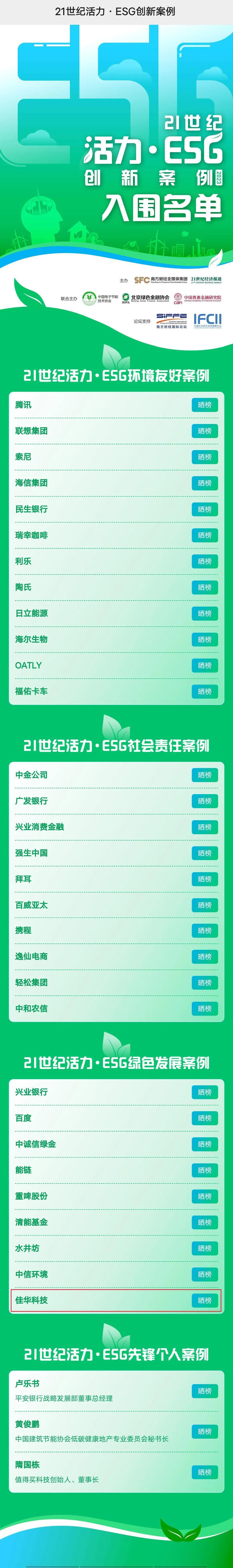 会员风采丨佳华科技入选21世纪“活力·ESG”绿色发展案例