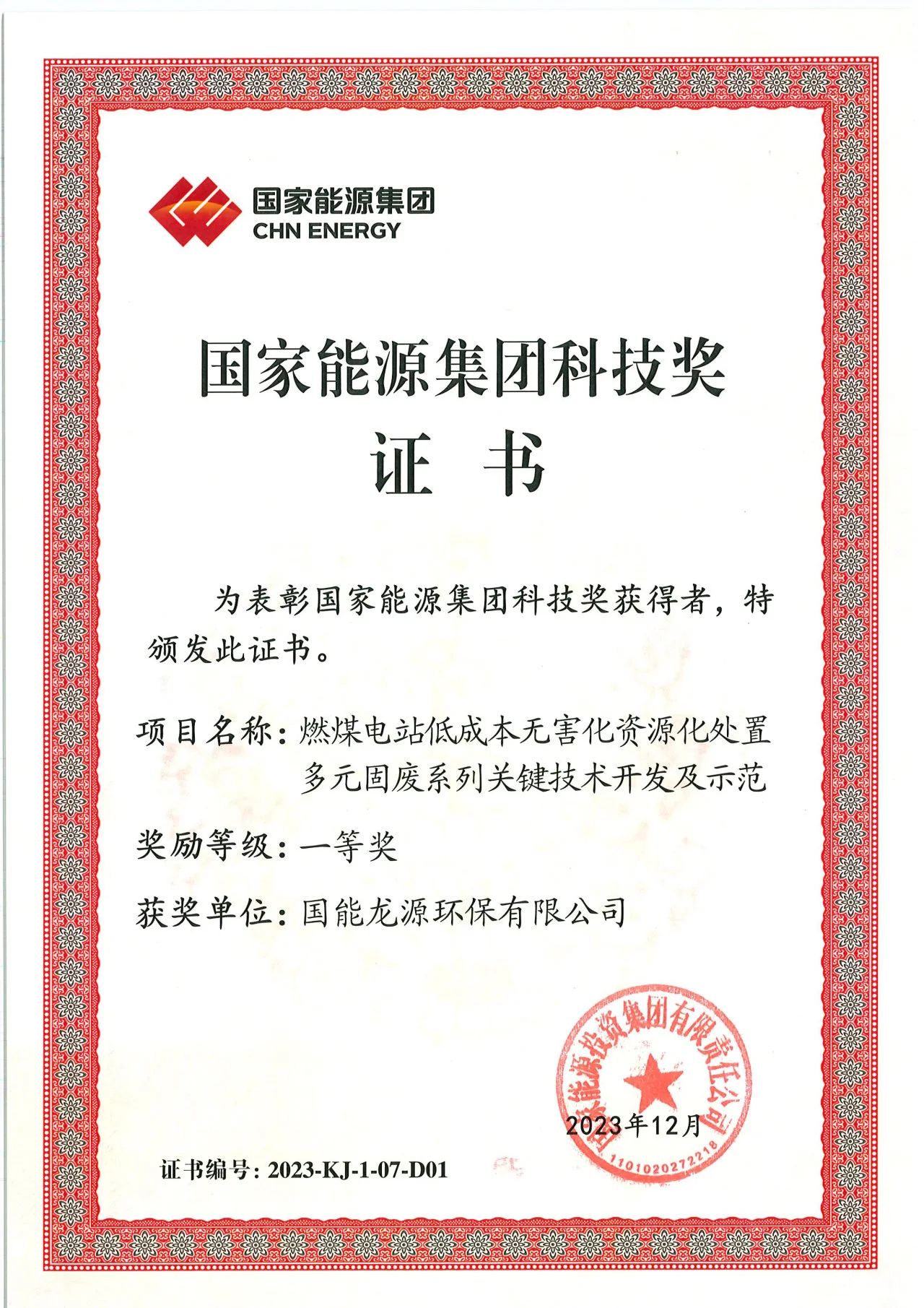 团队共申请专利142,其中已授权专利101件;共编制国家、行业及团体标准13;共发表科技论文20。团队屡获殊荣,相关成果荣获国家能源集团科技奖一等奖、北京市科学技术二等奖,成果入选国资委《中央企业科技创新成果推荐目录(2022年版)》、生态环境部2023年《国家先进污染防治技术目录(固体废物和土壤污染防治领域)》等。团队成果累计在科博会、服贸会、西洽会、环保展亮相10余次,在《中国能源报》、《中国环境报》等刊物发表文章7篇次