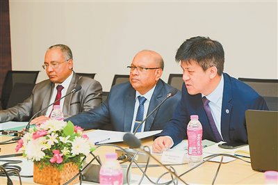 魏源送(右一)在斯里兰卡康堤参加中国—斯里兰卡水技术研究与示范联合中心学术理事会。