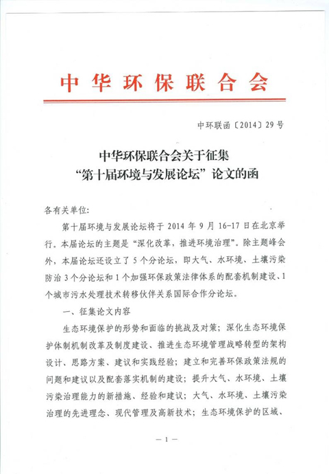 时间 : 2014-04-16 来源 : 中华环保联合会 作者 : admin 点击 : 次