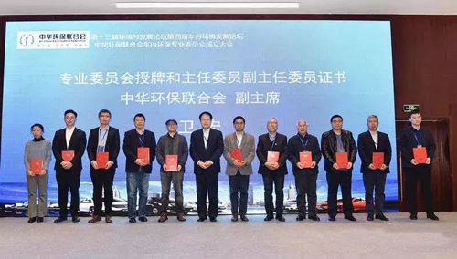中华环保联合会副主席卫宏(左六)为车质网等单位颁发主任、副主任委员证书