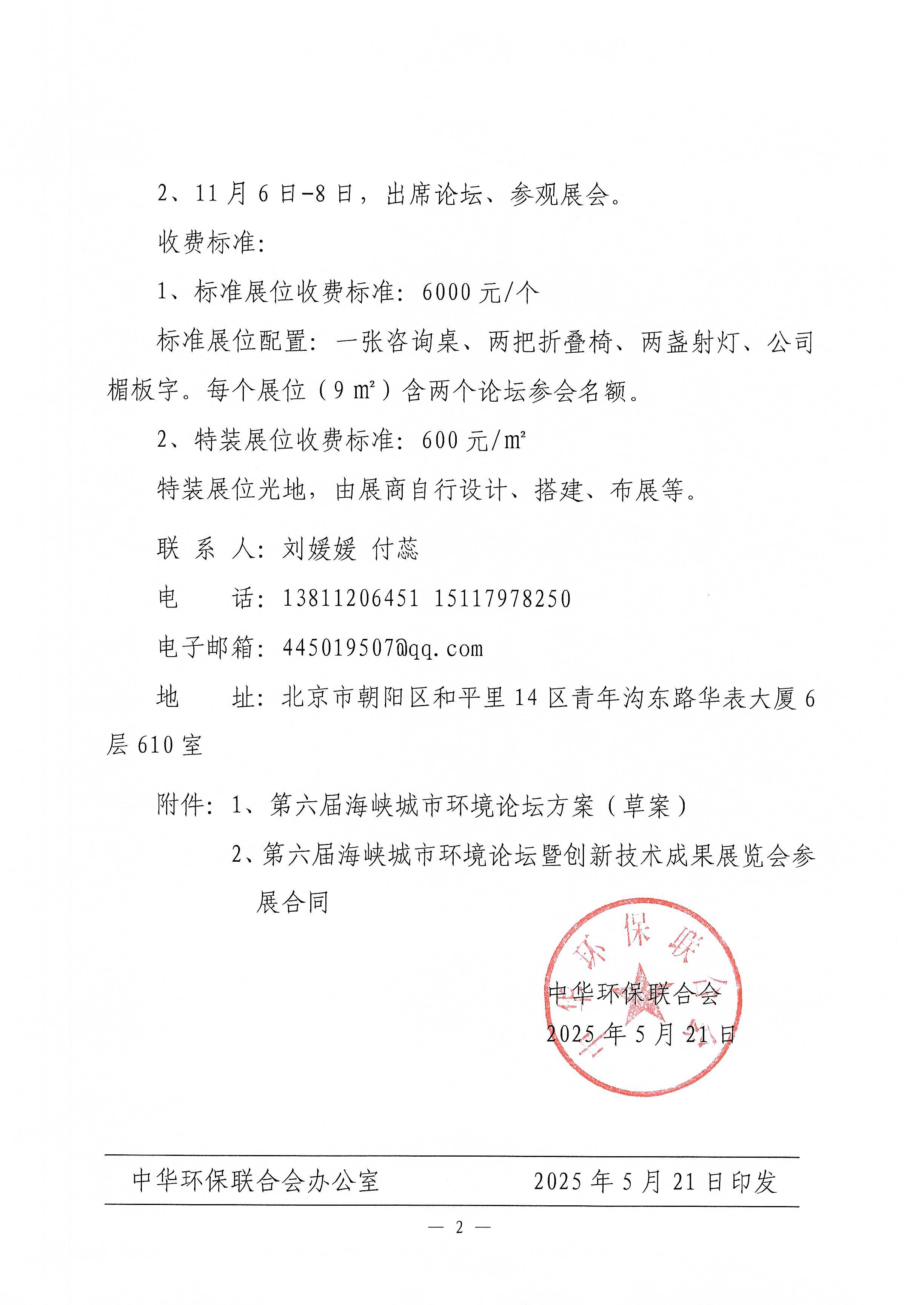 关于邀请参加第六届海峡城市环境论坛暨创新技术成果展览会的函