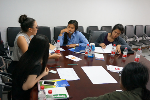随后,在我会国际部工作人员的讲解引导下,两个小组分别选取了其中“性别平等(SDG5-Gender Equality)”和“可持续城市和社区(SDG11-Sustainable Cities and Communities)”两个子目标,并借助“商业模式画布(Business Model Canvas)” 这一工具开展策划讨论。在长达1小时的交流策划过程中,中美学生代表群策群力,畅所欲言,整个气氛轻松愉快。