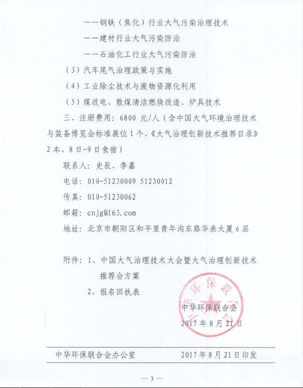 关于举办“中国大气治理技术大会暨大气治理创新技术推荐会”的通知