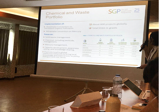 本活动主旨在于提升各国NGO组织在《关于汞的水俣公约》方面的履约能力,首日活动主要围绕各国NGO在汞公约履约方面已开展的工作进行交流,讨论了包括添汞产品、金矿开采、汞化合物排放等相关议题。第二日活动首先由来自UNDP GEF小额赠款项目负责人Yoko女士对于GEF小额赠款项目25年来的工作、以及今年在化学品废弃物方面的主要思路进行了分享;随后由来自蒙古、印度尼西亚等国家的GEF小额赠款国家项目负责人对于具体的项目申请工作进行了介绍并主持了讨论,使各国NGO组织代表对于GEF小额赠款项目对汞公约方面的支持情况有了更为深入细致的了解。