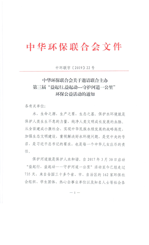 关于邀请联合主办第三届“益起行,益起动——守护河道一公里”环保公益活动的通知