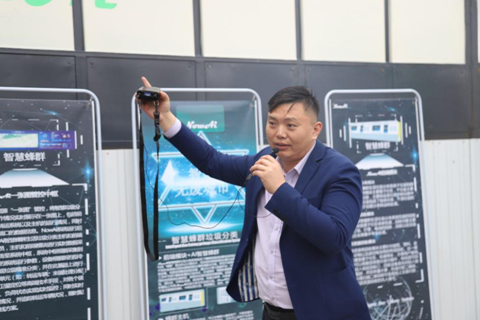 煜新(广州)资源科技发展有限公司总经理尚博讲解公司自主研发的中转站级垃圾分类装备系统