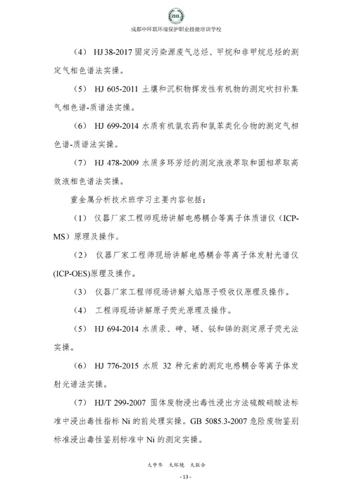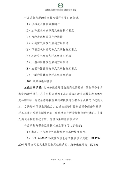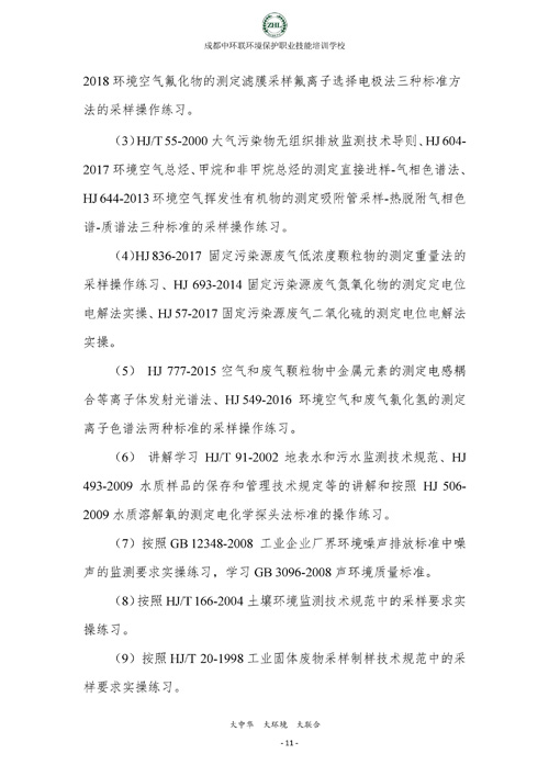 成都中环联环境保护职业技能培训学校生态环境监测实操技能培训班招生简章