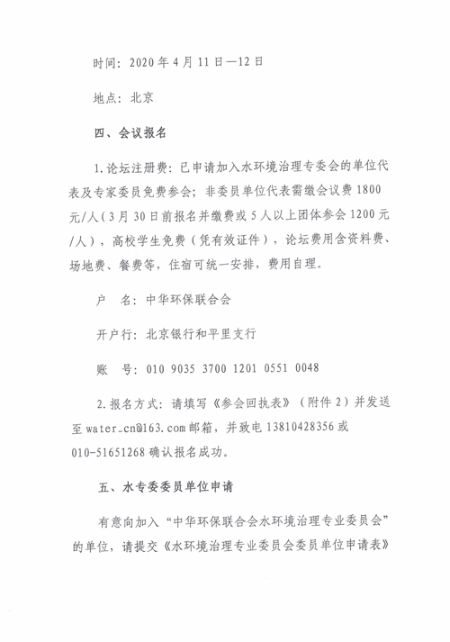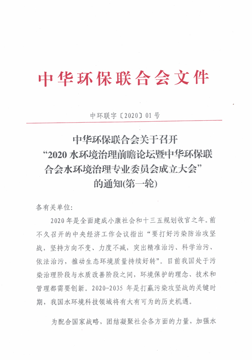 关于召开“2020水环境治理前瞻论坛暨中华环保联合会水环境治理专业委员会成立大会”的通知(第一轮)