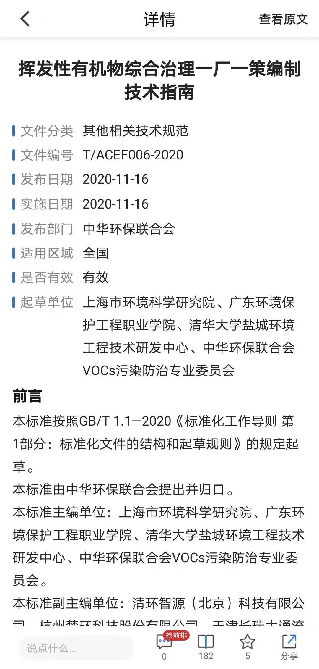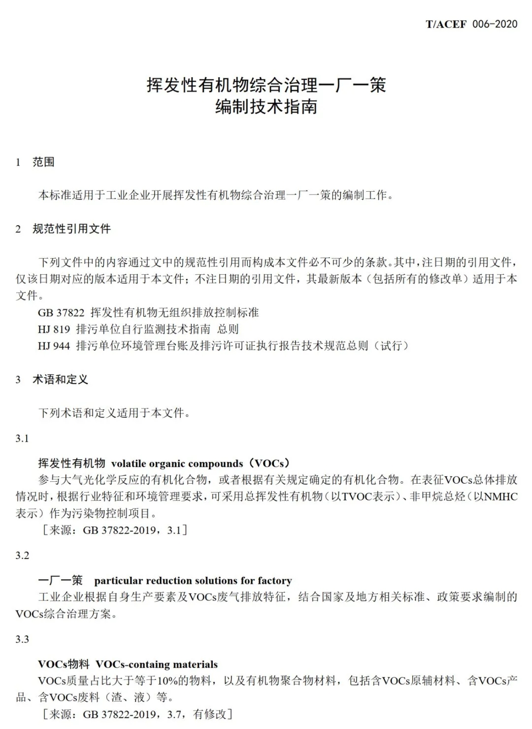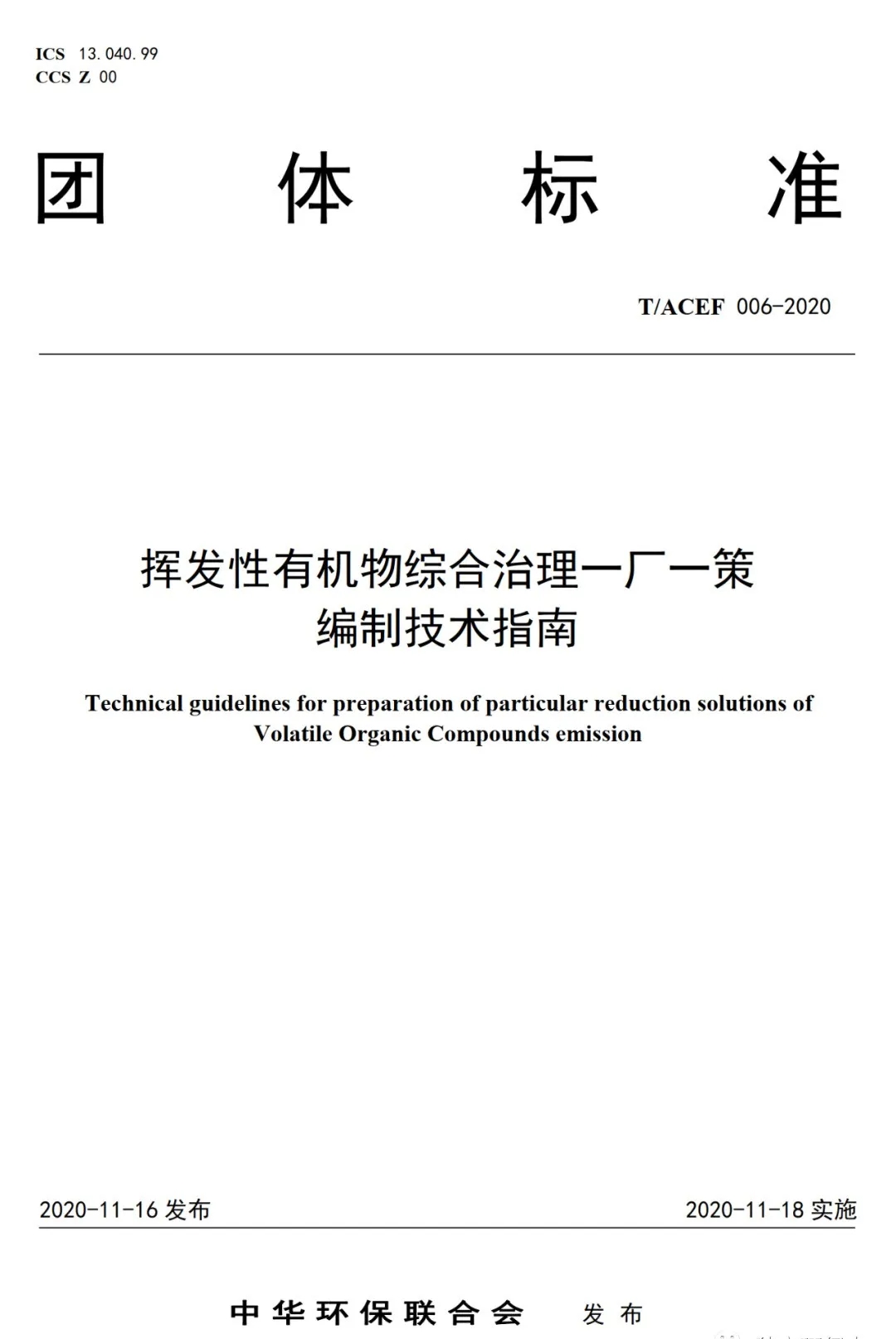 日前,《挥发性有机物综合治理一厂一策编制技术指南》(T/ACEF 006-2020)于2020年11月16日经中华环保联合会批准发布,自2020年11月18日起实施。