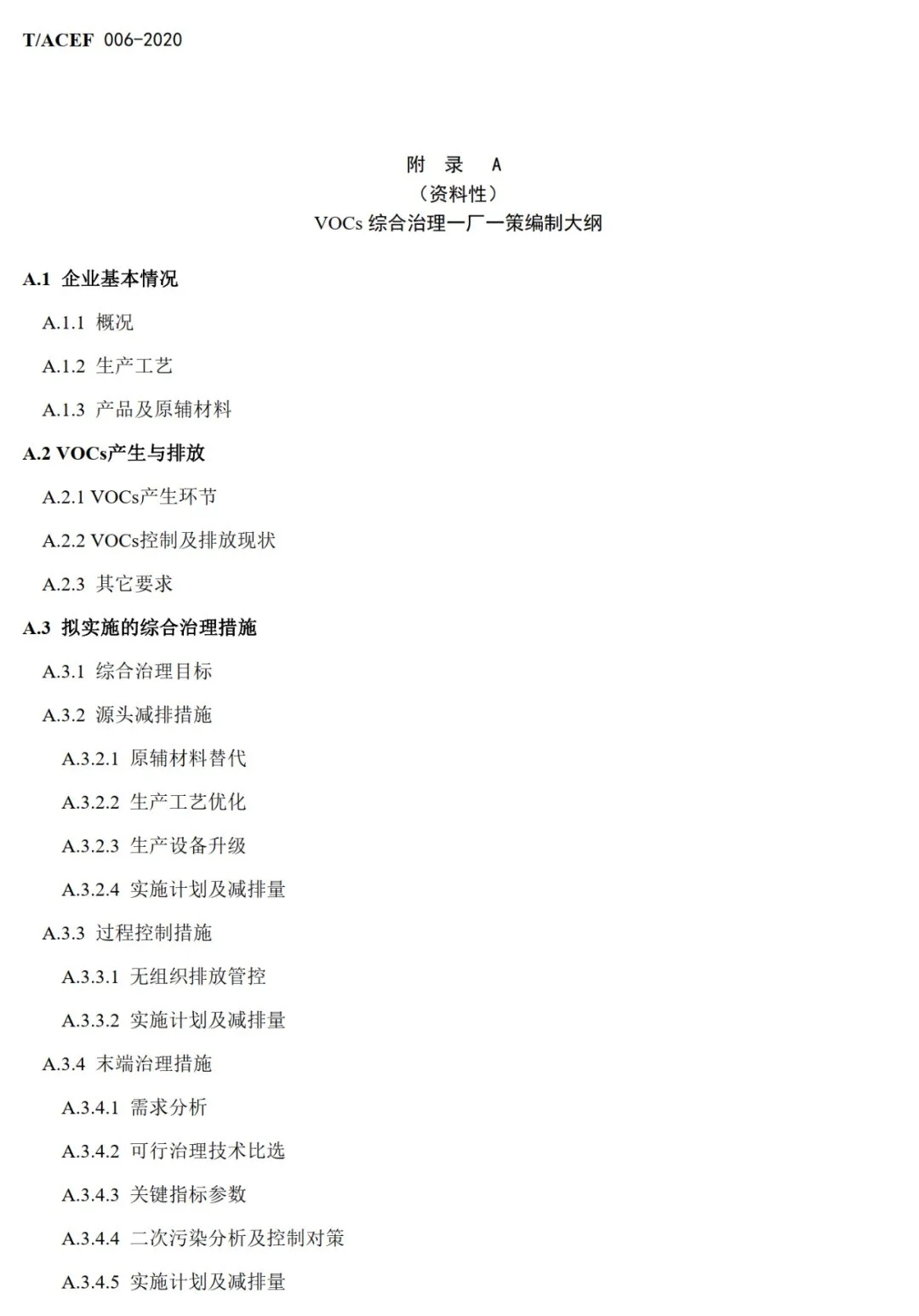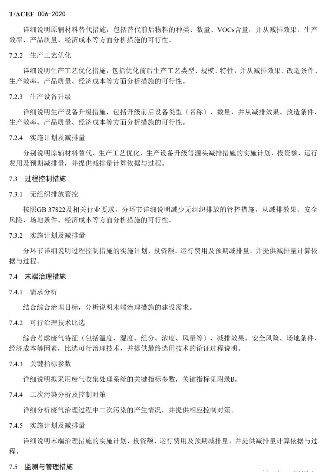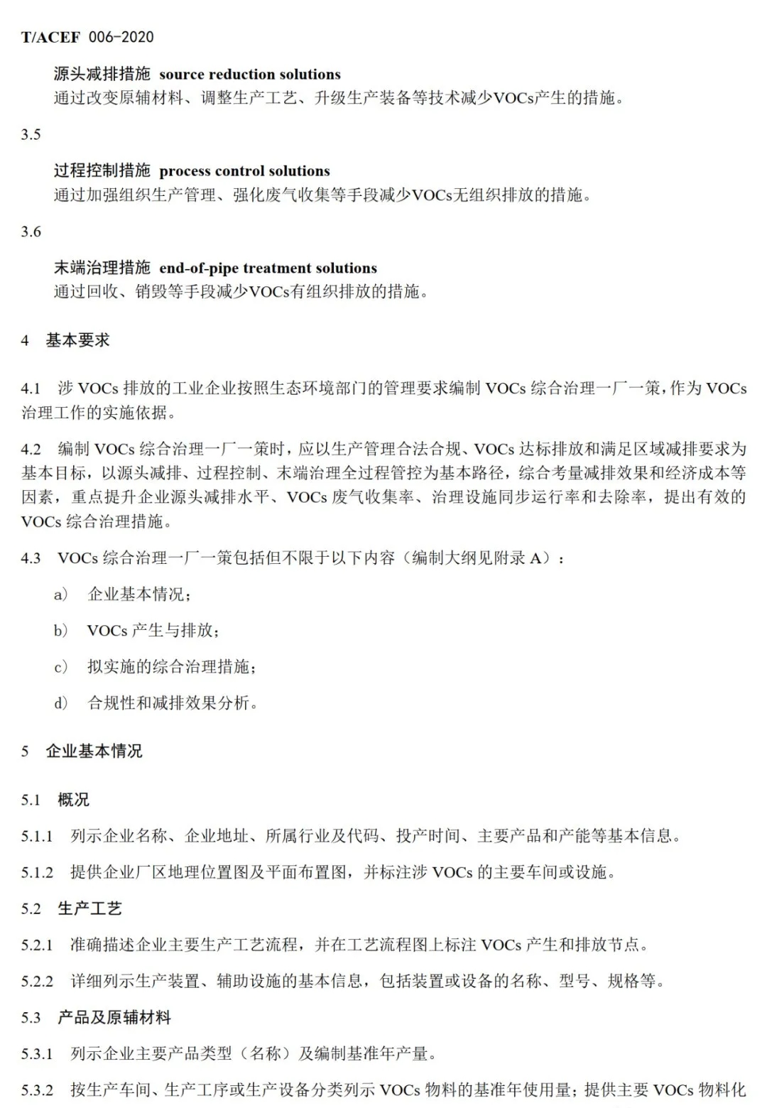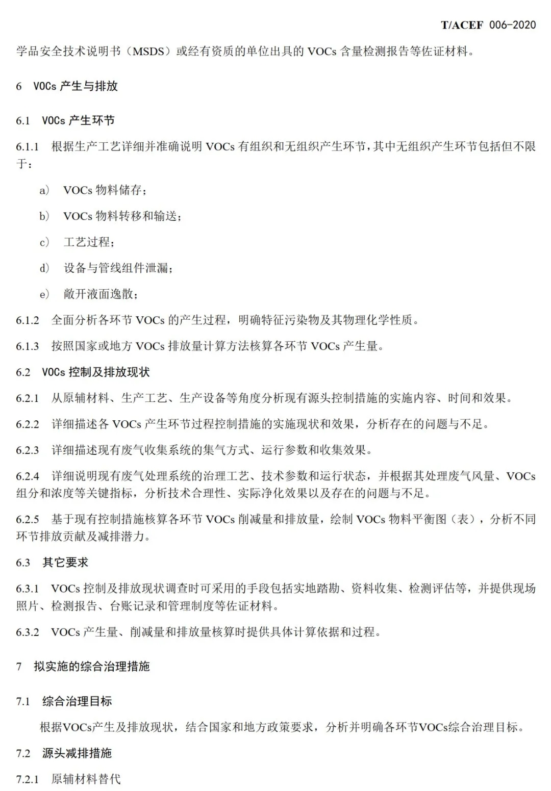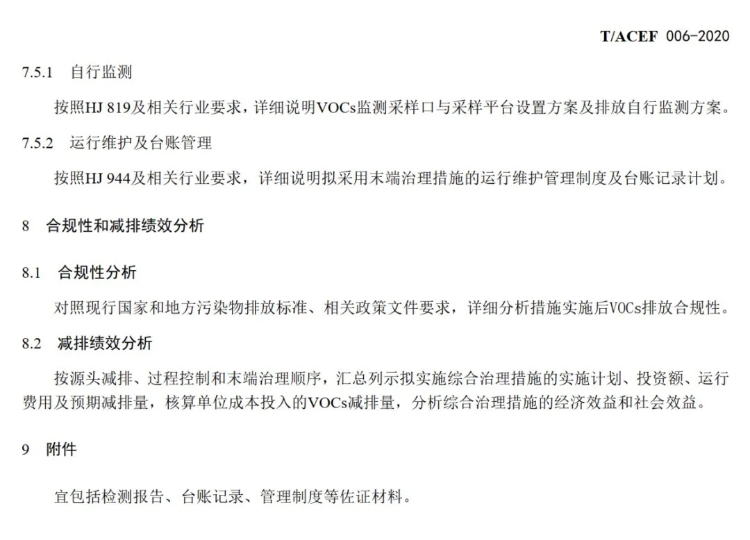 本标准主要技术内容包括:基本要求、VOCs产生与排放、拟实施的综合治理措施、 合规性和减排绩效分析。