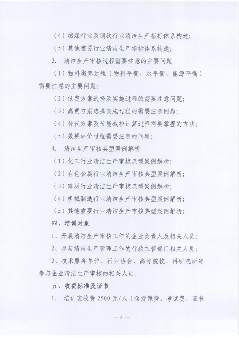 关于举办2021年第3期“清洁生产审核从业人员”网络直播培训的通知
