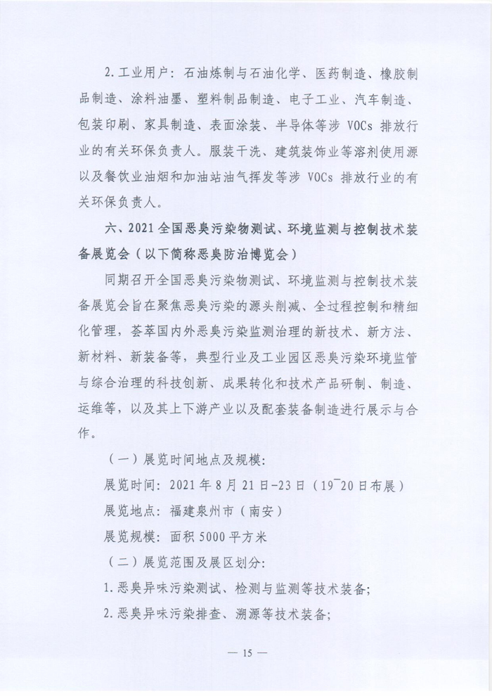 关于举办“2021全国挥发性有机物(VOCs)污染防治科技大会暨2021全国挥发性有机物(VOCs)污染防治技术装备博览会,2021全国恶臭污染物测试、环境监测与控制技术装备展览会”的预通知