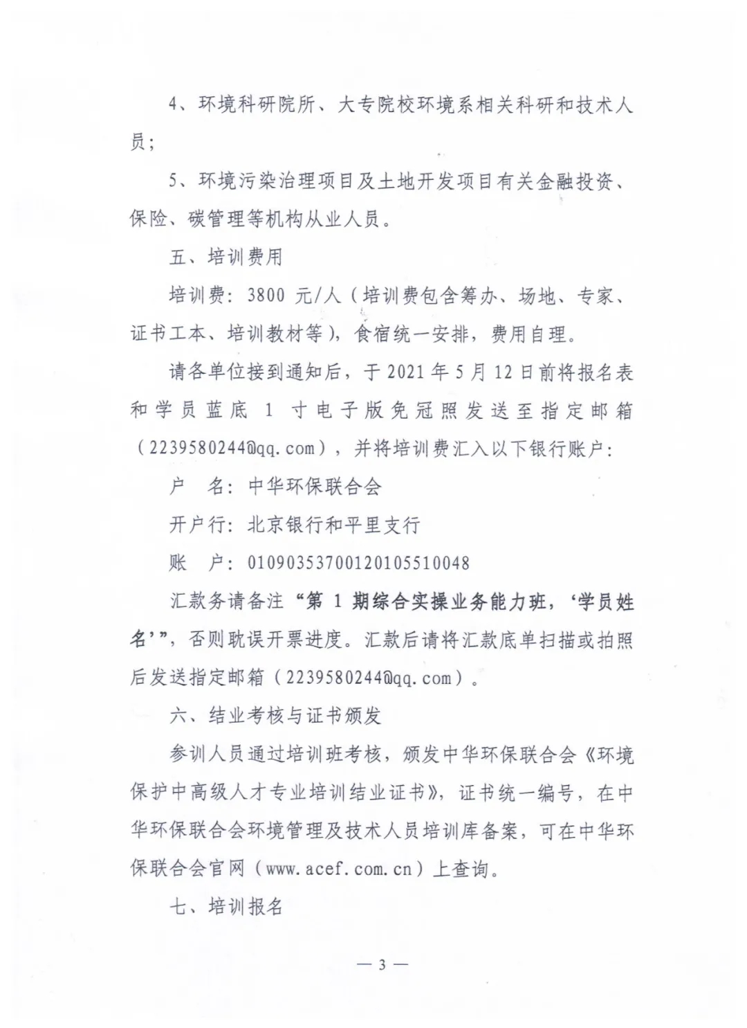关于举办第一期“环保综合实操业务能力提升集训暨建设项目竣工验收报告、地块土壤污染状况调查与报告编制”高级研修班的通知