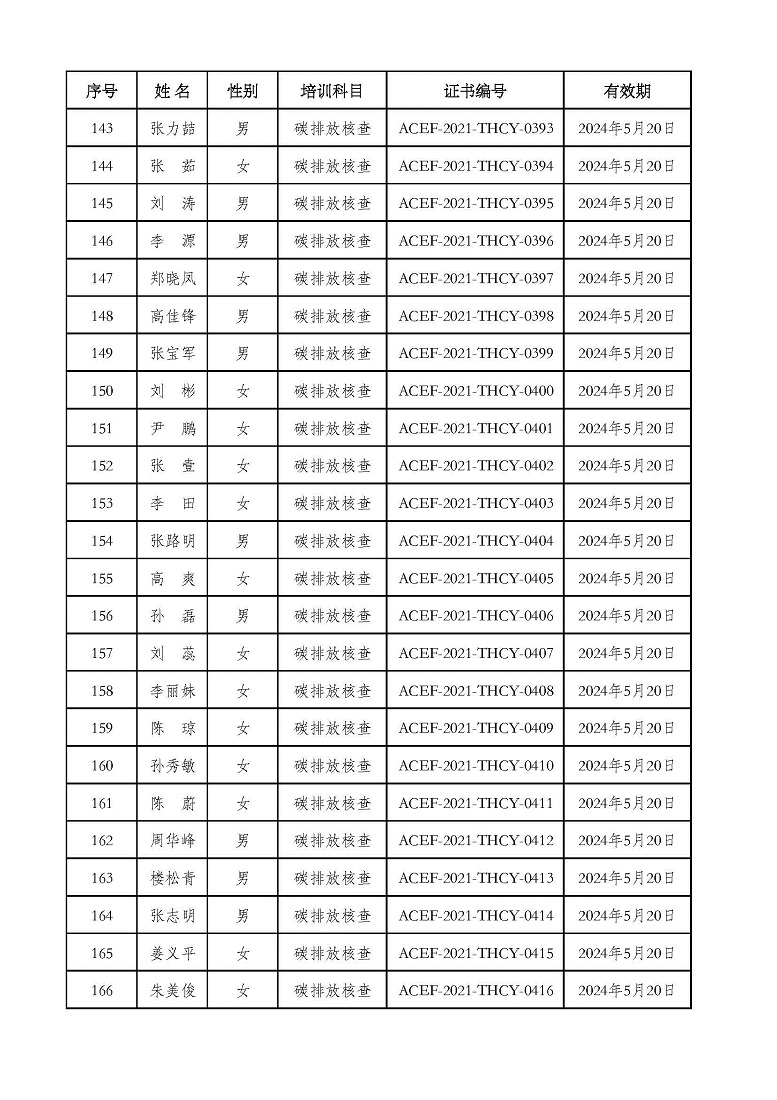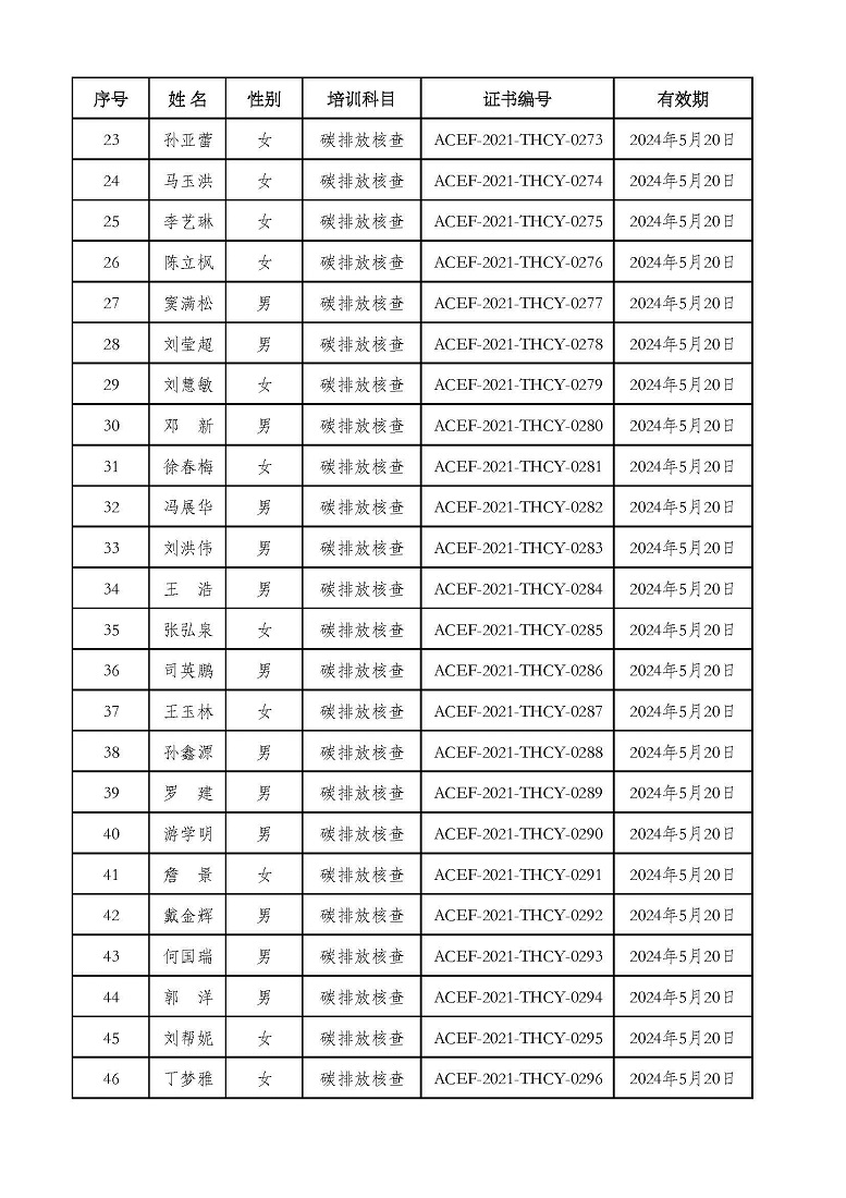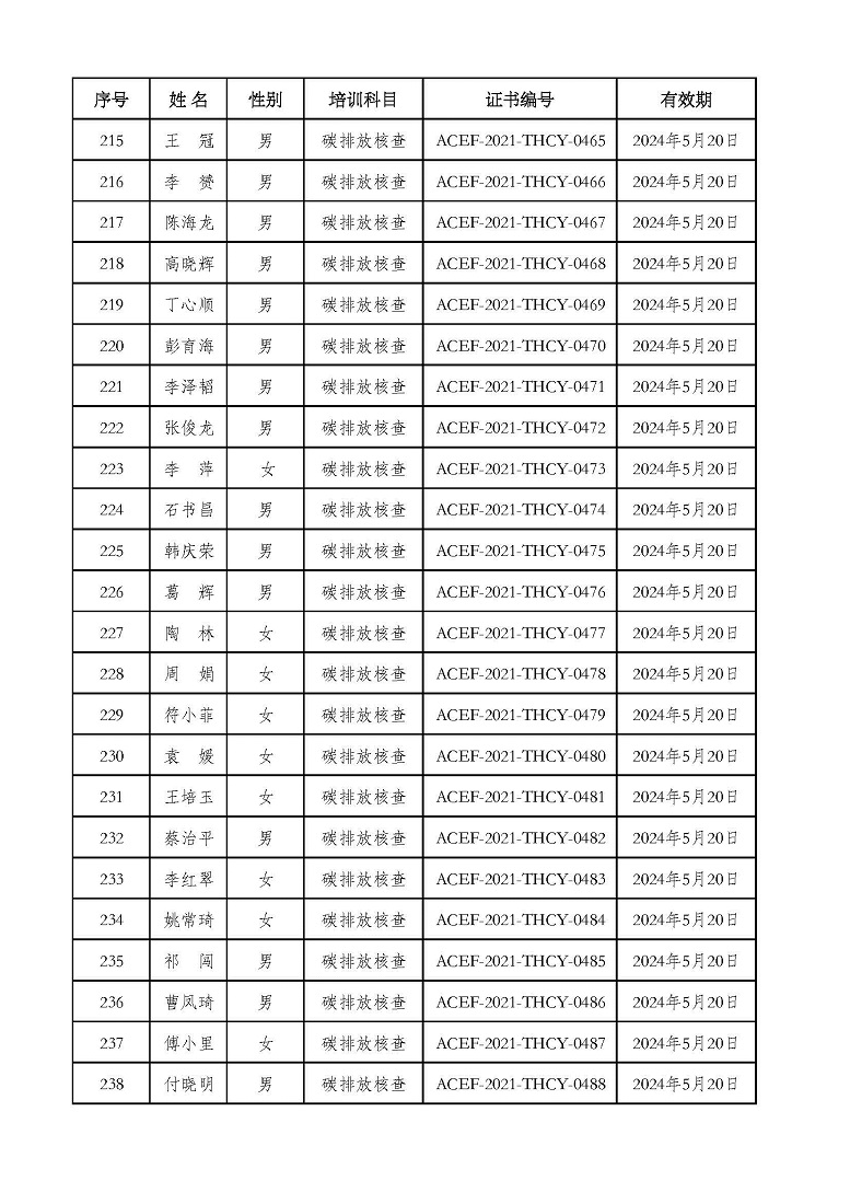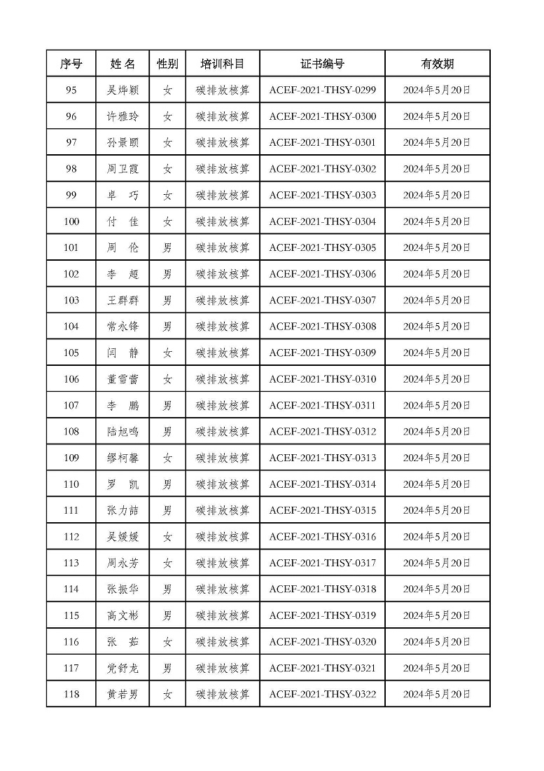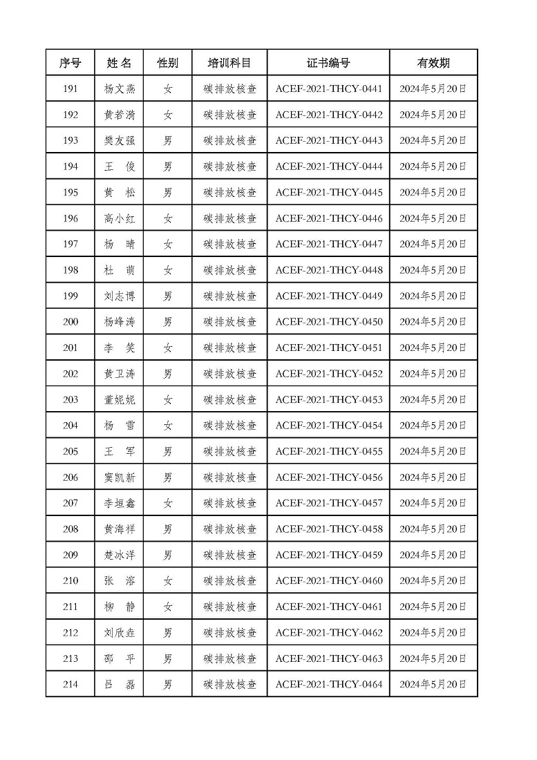 2021年第2期“碳排放管理(碳排放核算员、碳排放核查员)技术培训班”合格学员公示