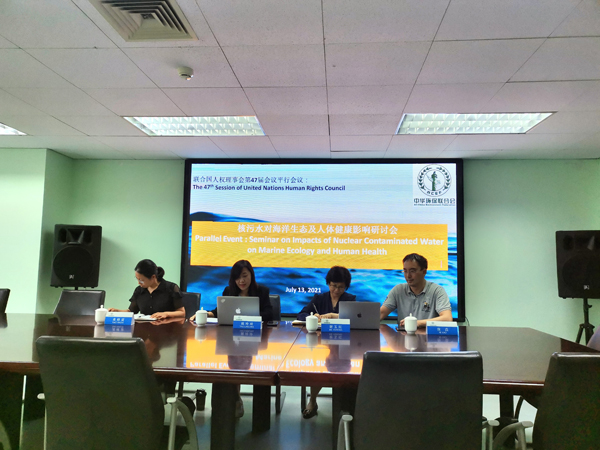 7月13日,中华环保联合会在联合国人权理事会第47届会议期间举办“核污水对海洋生态与人体健康影响”平行边会。中华环保联合会副主席兼秘书长谢玉红作开场致辞,来自国际消除持久性有机污染物联盟(IPEN)的侯赛因•沙赫里亚尔(Hossain Shahriar)、绿色和平的肖恩•伯尼(Shaun Burnie)以及世界自然保护联盟(IUCN)世界环境法委员会的秦天宝分别从海洋生态保护、人体健康、食品安全以及国际法等角度分析了核污水排放的影响和建议。来自日本、韩国、巴基斯坦、中国等四国民间环保组织和智库代表进行了民间交流,分别表达对日本福岛第一核电站核污水排入太平洋的担忧,并分享自4月份日本作出决策以来各国民间进行的努力,一致呼吁日本政府能从国际社会和公众的环境权和健康权出发,撤回将福岛第一核电站核污水排入太平洋的决定。