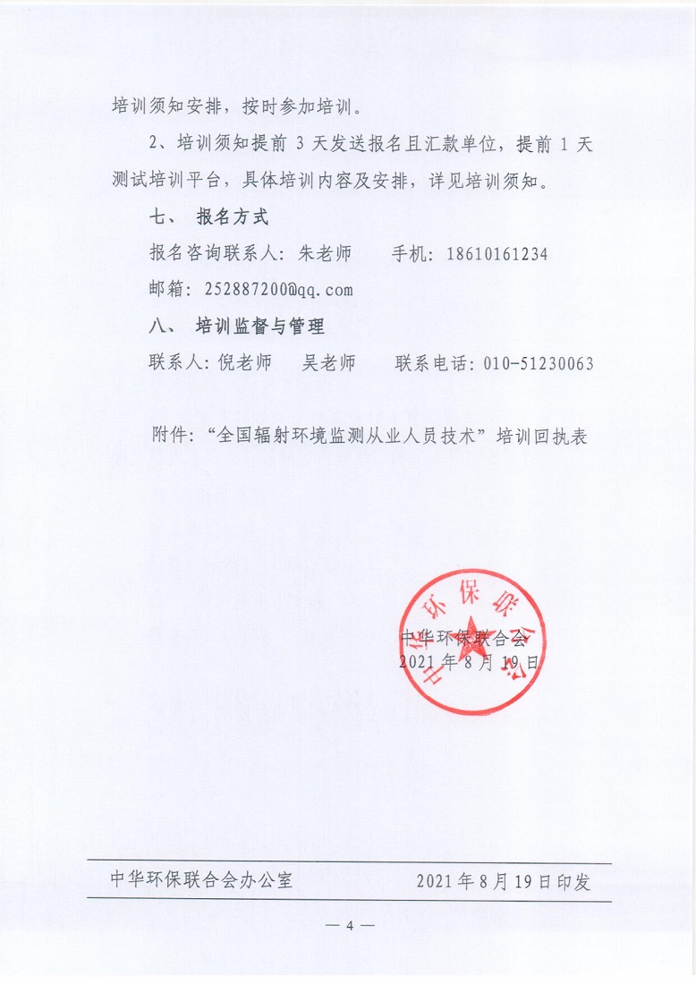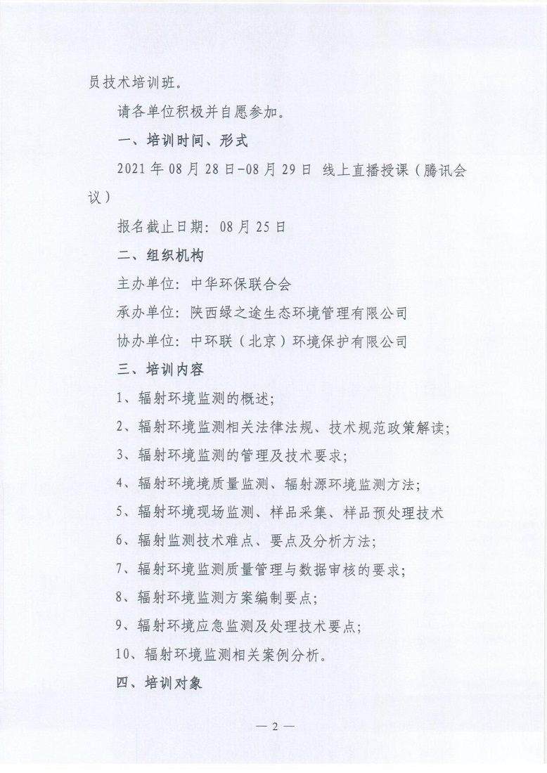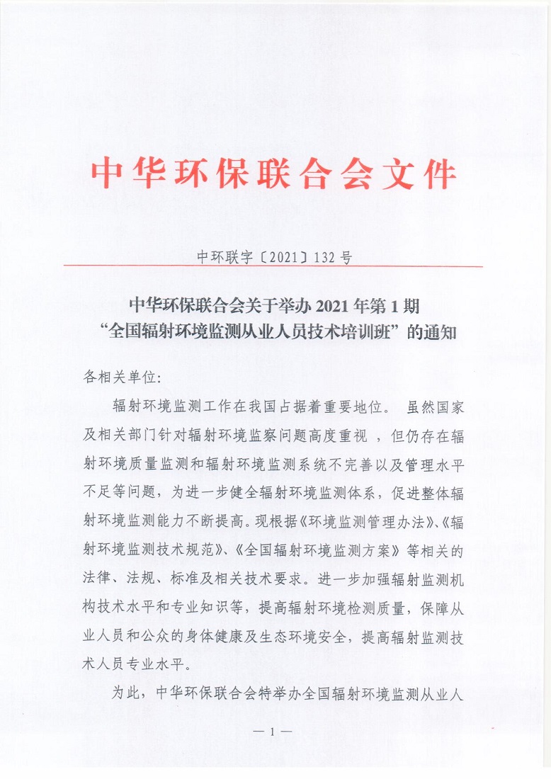 关于举办2021年第1期“全国辐射环境监测从业人员技术培训班”的通知