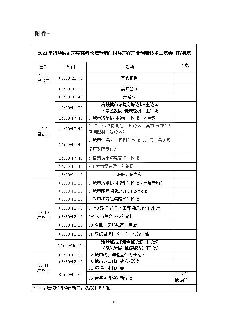 附件1:2021年海峡城市环境高峰论坛暨厦门国际环保产业创新技术展览会日程概览