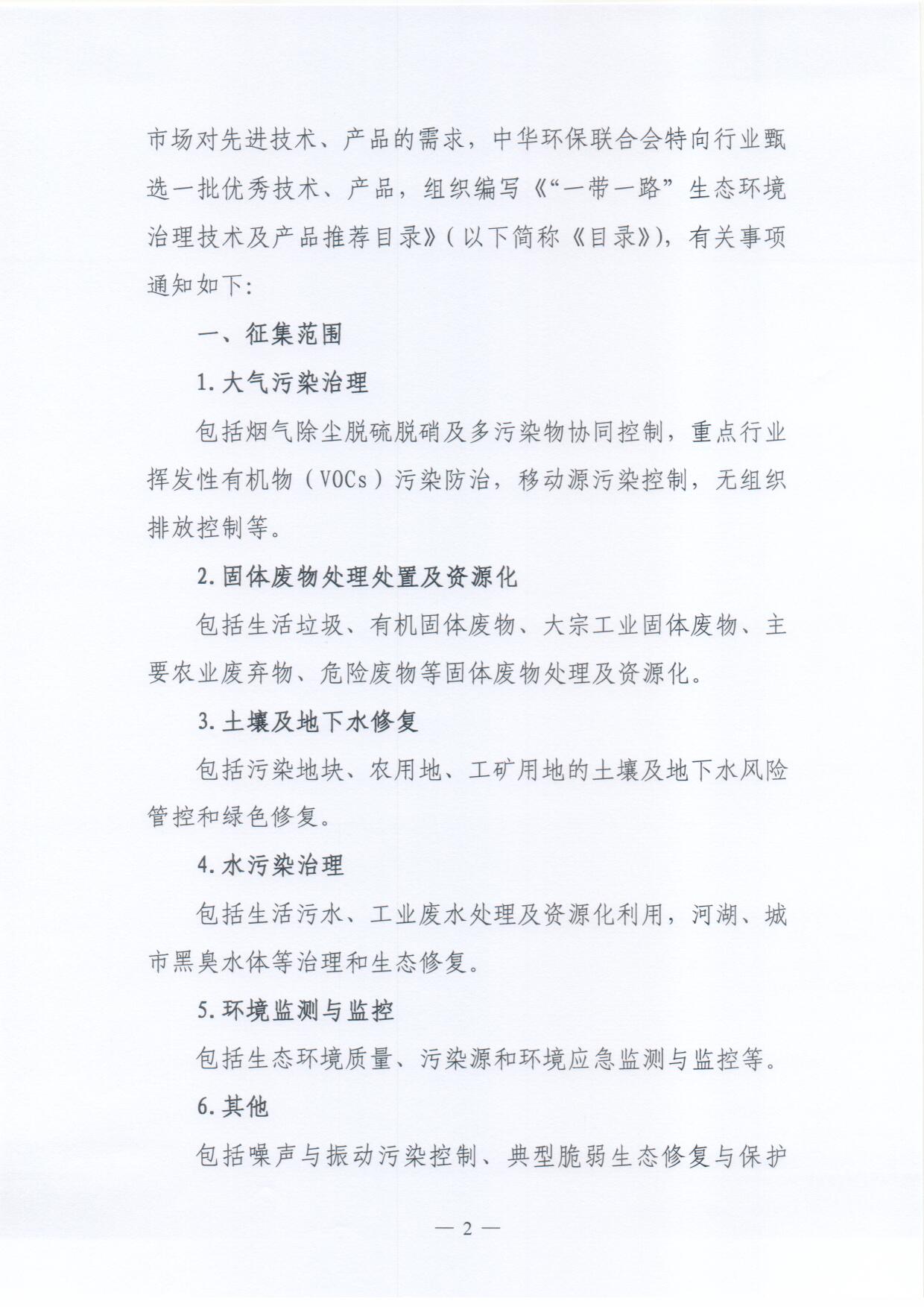 关于征集编写《“一带一路”生态环境治理技术 及产品推荐目录》的通知
