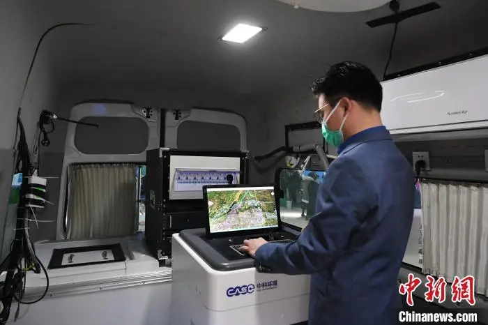 11月26日,安徽合肥,工作人员正在演示大气立体走航监测系统。 韩苏原 摄