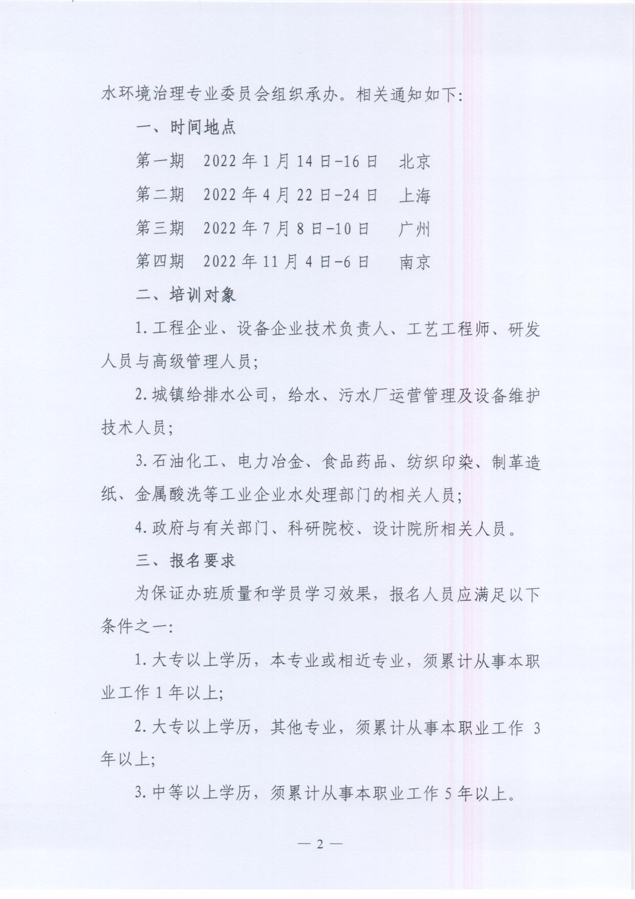 关于举办“双碳背景下水处理工程技术人员高级研修班”的通知