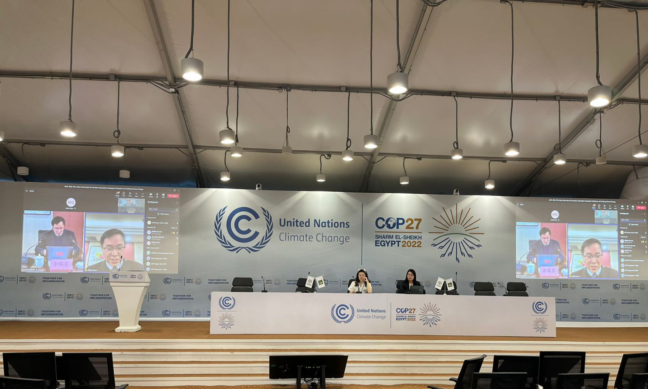 埃及时间11月12日下午,中华环保联合会于《联合国气候变化框架公约》第二十七次缔约方大会第四官方边会会议室举办了“生态文明与应对气候变化”主题边会,中央社会主义研究院陆琼博士、北京市丰台区教委杨晓辉主任、北京市第十八中学校长管杰、北京市第十八中学马艺原同学以及专注生态保护、可持续能源、塑料污染治理等领域的行业组织、企业代表线上、线下出席了会议,并作了主题分享,旨在为更好的向国际社会传播生态文明理念,促进重要环境议题与应对气候变化之间的协同。中华环保联合会副秘书长李瑞东致辞发言,会议由中华环保联合会国际部副部长倪垚主持。