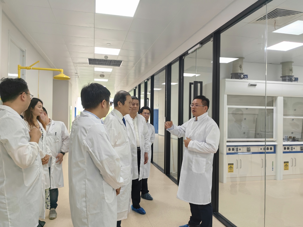 张伟明董事长对孙晓华主席一行亲临上海盛剑总部考察指导表示感谢,引导参观了上海盛剑研发中心及展厅,并详细介绍了公司的发展情况、科研成果、典型项目案例及取得的荣誉等,同时对公司重点业务发展进行了展望探讨。