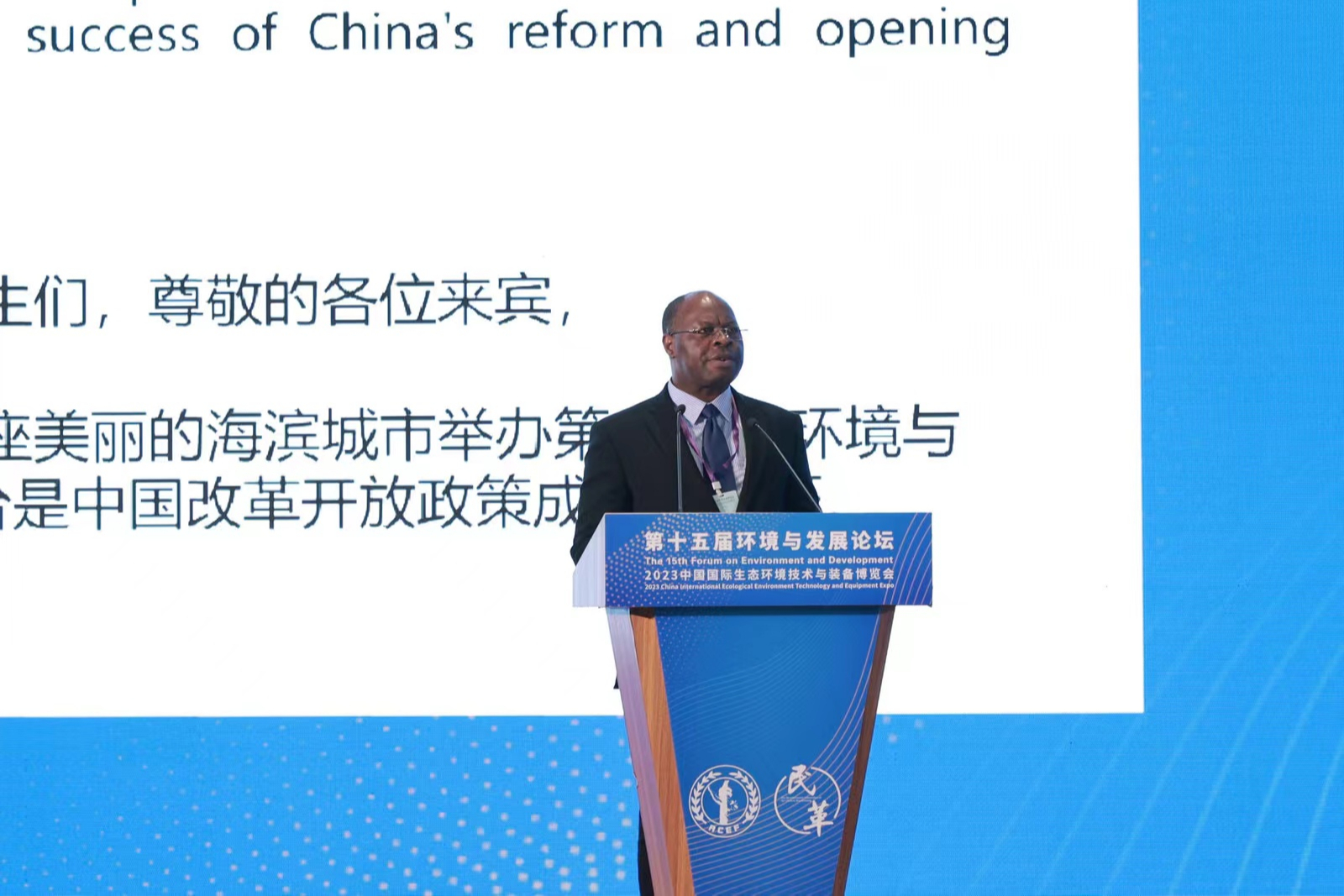 在开幕式上,联合国环境规划署驻华代表涂瑞和以视频形式致辞。刚果(金)驻华大使巴卢穆埃内、加蓬驻华大使波德莱尔·恩东·埃拉、马拉维驻华大使艾伦·钦泰扎,山东省政协副主席、民革山东省委员会主委孙继业,全国政协常委、副秘书长、民革中央副主席兼秘书长李惠东,中华环保联合会主席孙晓华分别致辞。开幕式由中华环保联合会副主席、生态环境部原国家生态环保督察专员夏光主持。