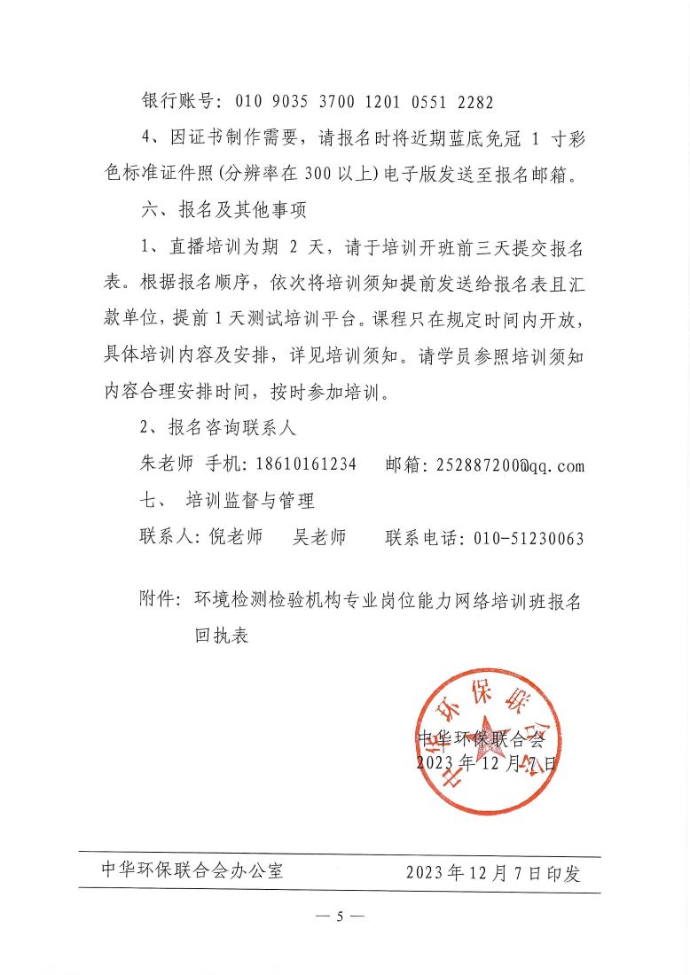 关于举办第7期“环境检测检验机构(内审员、化验员)专业岗位能力”网络培训班的通知