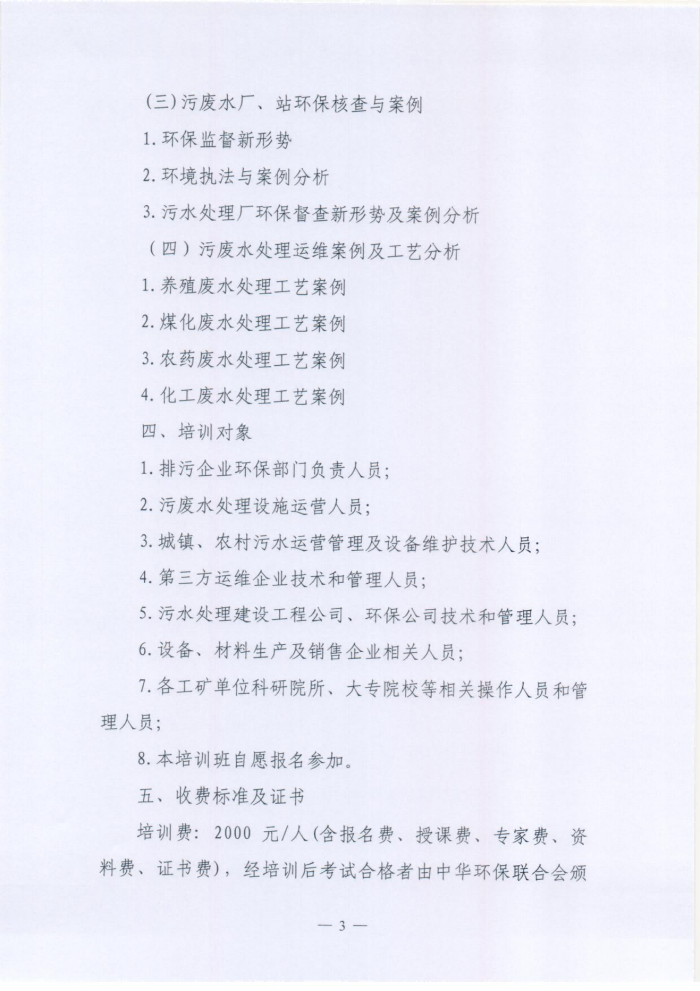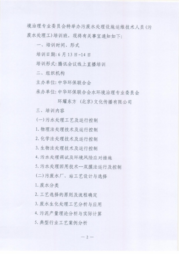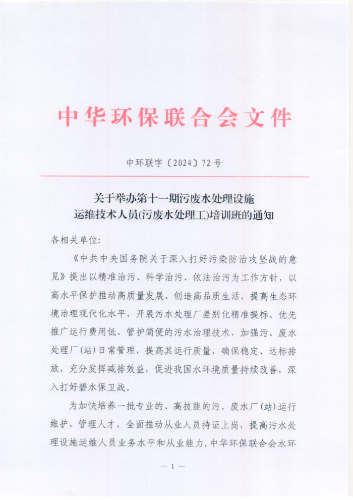 关于举办第十一期污废水处理设施运维技术人员(污废水处理工)培训班的通知