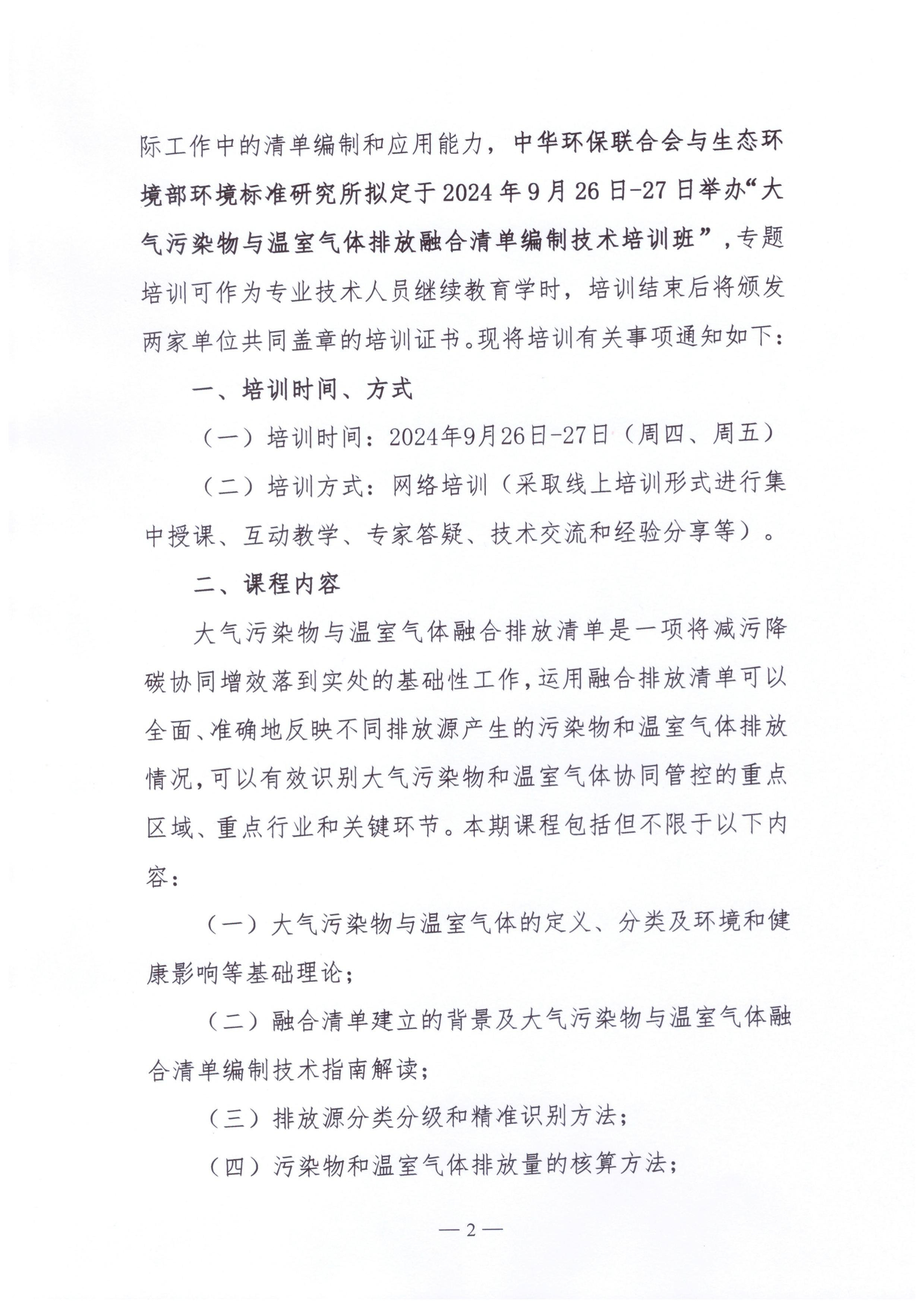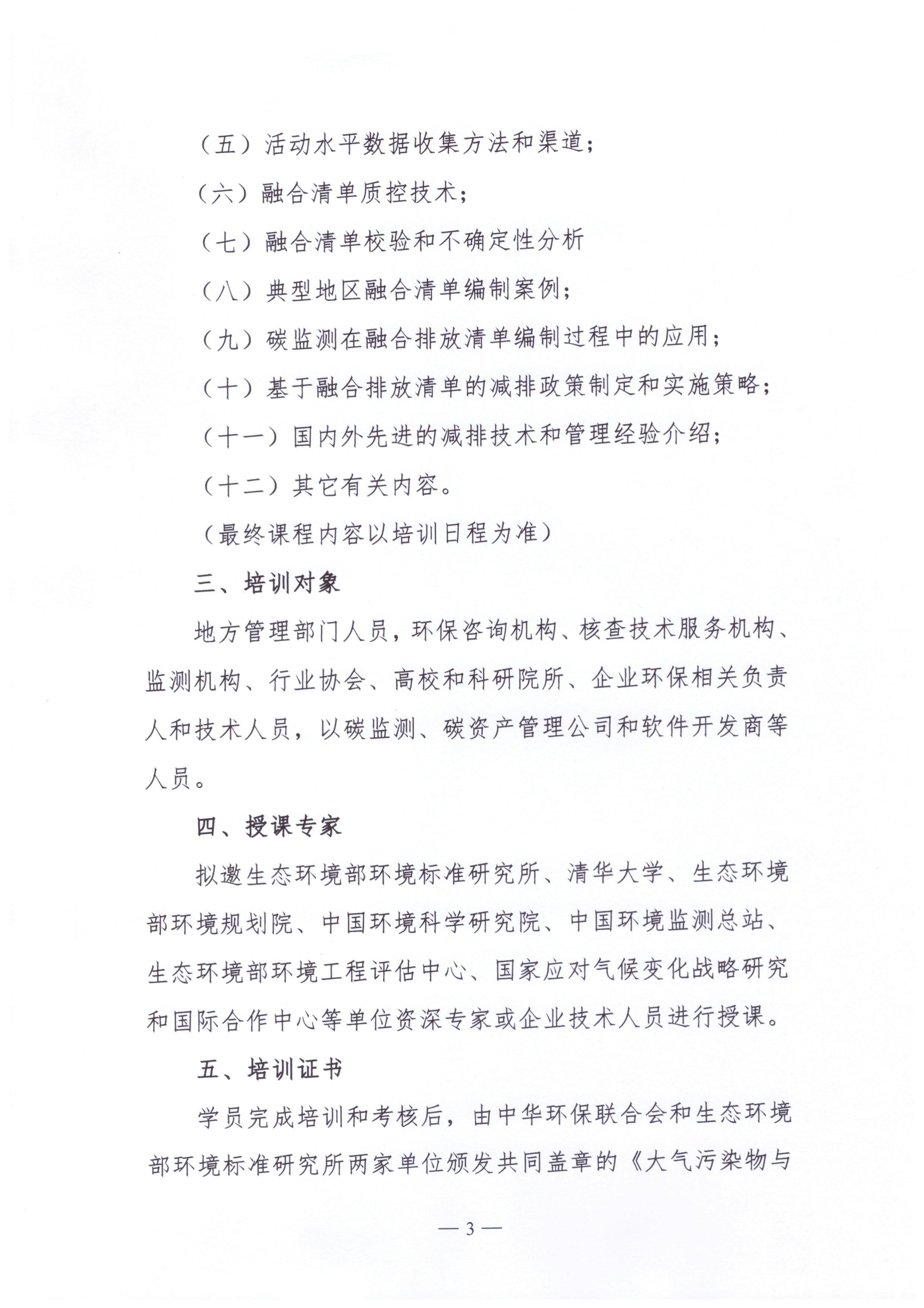 关于举办大气污染物与温室气体排放融合清单编制技术培训班的通知
