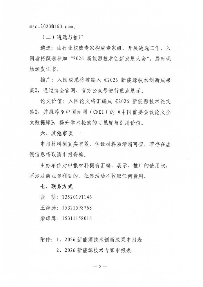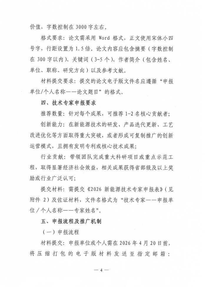 关于征集2026新能源技术创新成果、论文及技术专家的通知