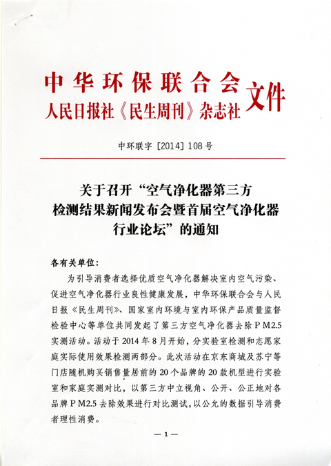 为扩大活动的影响面,拟于2014年12月中下旬在北京组织召开“空气净化器第三方检测结果新闻发布会暨首届空气净化器行业论坛”。具体内容见附件发文。