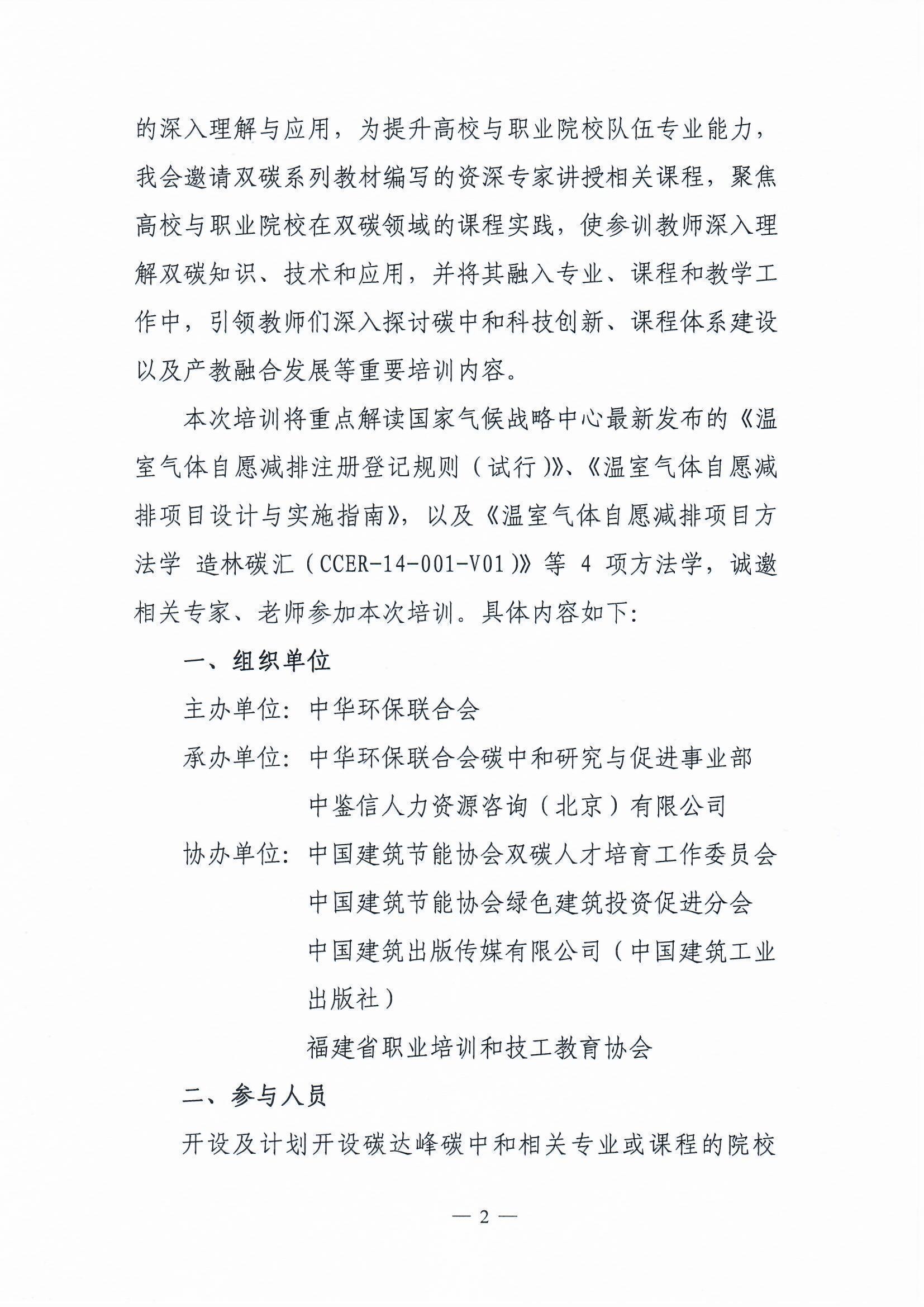 关于举办2023年碳排放管理员教师专业能力提升 暨院校碳达峰碳中和课程体系建设培训班(第一期)通知